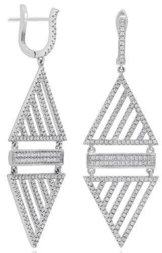 LARGE 1.65CT DIAMOND 18KT WHITE GOLD TRIANGULAR GEOMETRICAL FUN HANGING EARRINGS