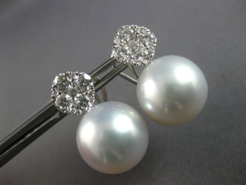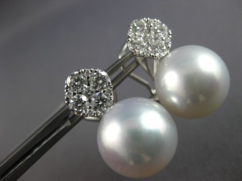 LARGE 1.65CT DIAMOND & AAA SOUTH SEA PEARL 18KT WHITE GOLD 3D CLIP ON EARRINGS