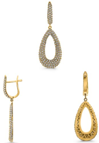 LARGE 1.74CT DIAMOND 14KT YELLOW GOLD 3D ROUND MULTI ROW OPEN TEAR DROP EARRINGS
