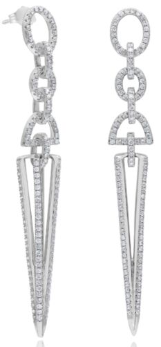 LARGE 1.80CT DIAMOND 18K WHITE GOLD 3D TRIANGULAR LOVE KNOT FUN HANGING EARRINGS