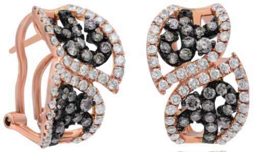 LARGE 1.90CT WHITE & CHOCOLATE FANCY DIAMOND 14KT ROSE GOLD DOUBLE LEAF EARRINGS