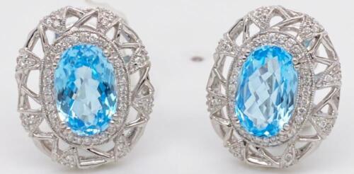 LARGE 10.07CT DIAMOND & AAA SKY BLUE TOPAZ 14KT WHITE GOLD OVAL & ROUND EARRINGS