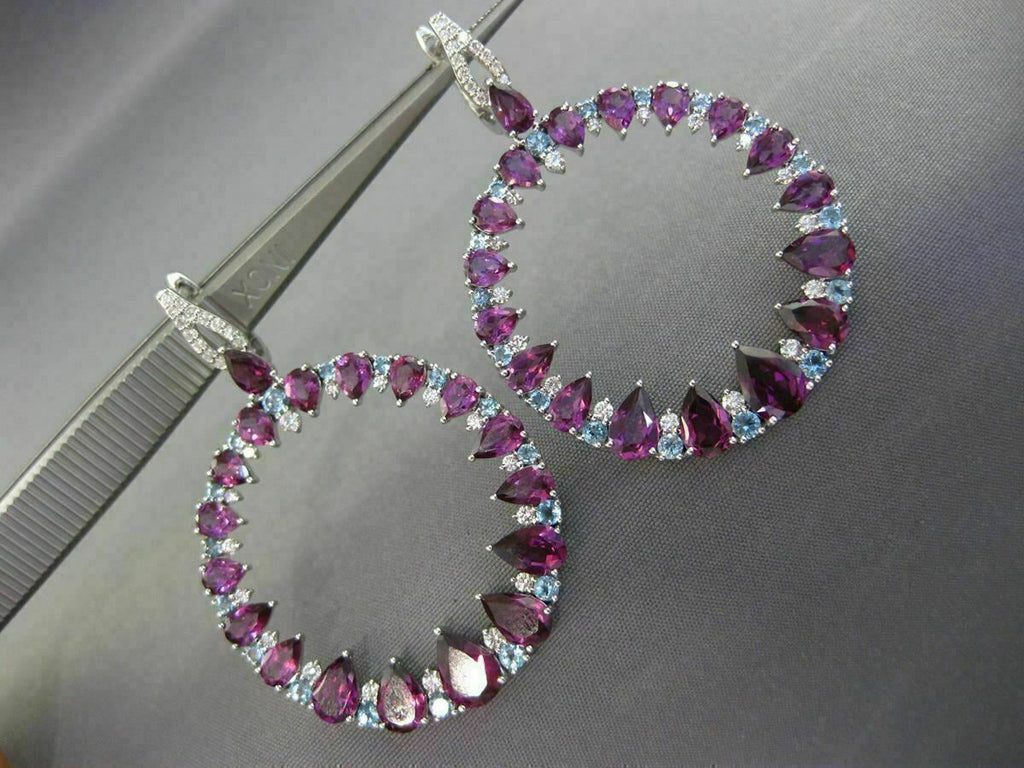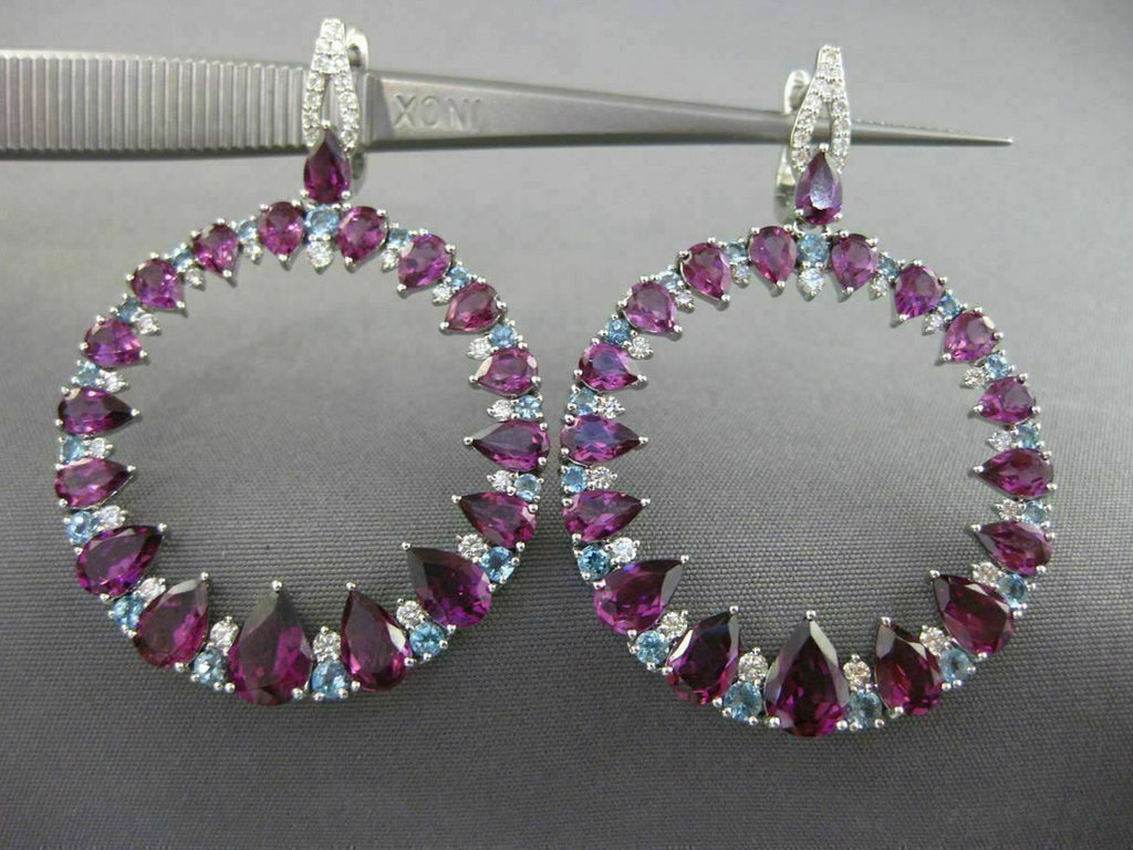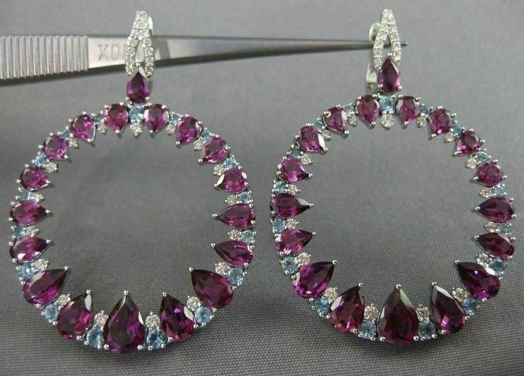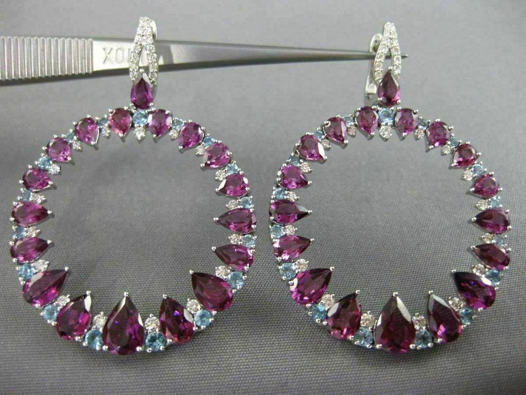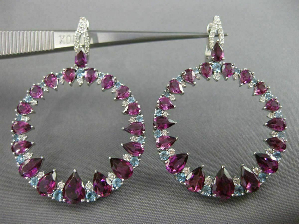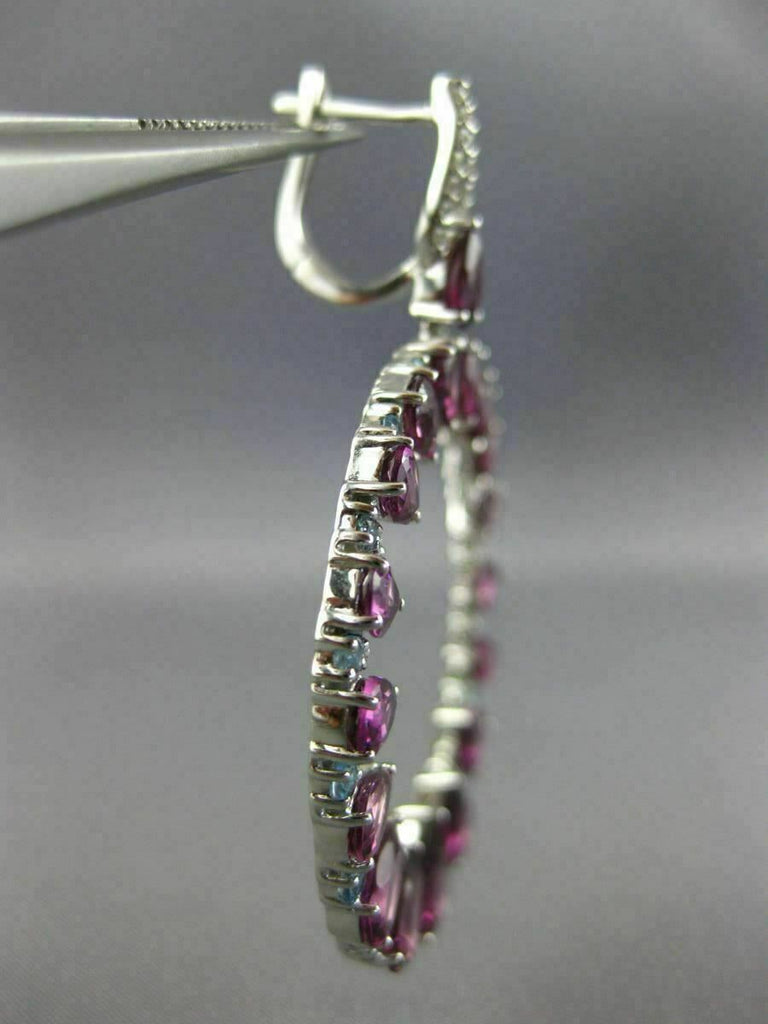 LARGE 10.57CT DIAMOND & AAA BLUE TOPAZ AMETHYST 14KT WHITE GOLD HANGING EARRINGS