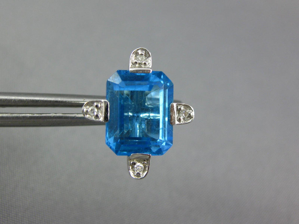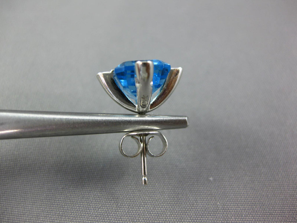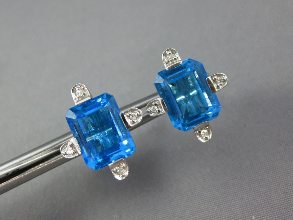 LARGE 10.1CT DIAMOND & AAA BLUE TOPAZ 14KT WHITE GOLD EMERALD CUT STUD EARRINGS