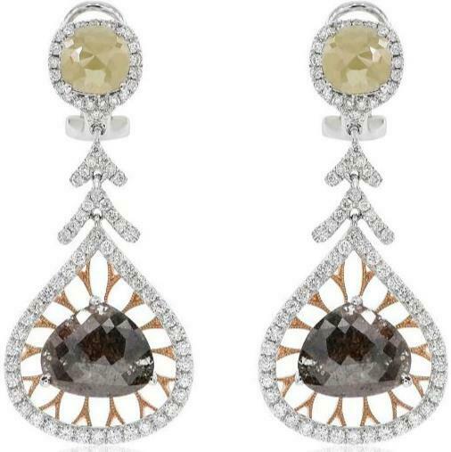 LARGE 11.22CT WHITE & MOCHA DIAMOND 18KT WHITE & ROSE GOLD 3D HANGING EARRINGS