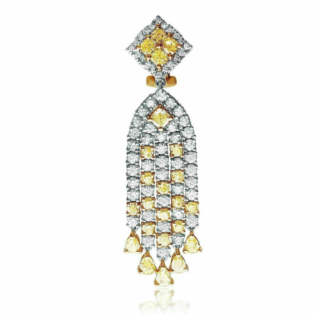 LARGE 11.58CT WHITE & FANCY YELLOW DIAMOND 18K 2TONE GOLD 3D CHANDELIER EARRINGS