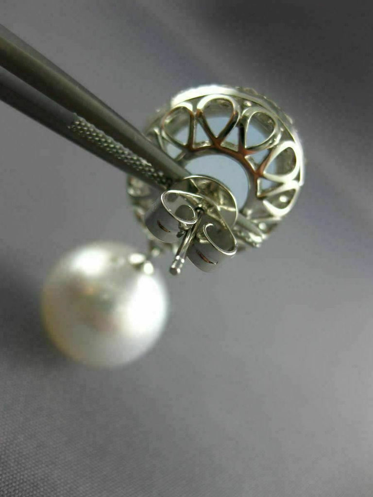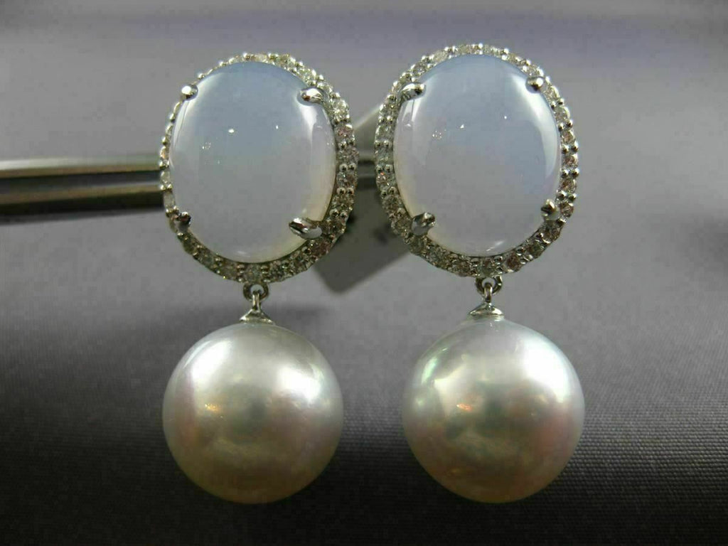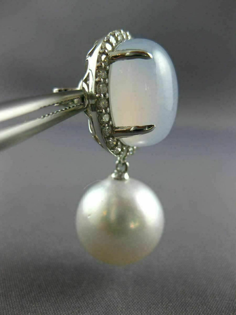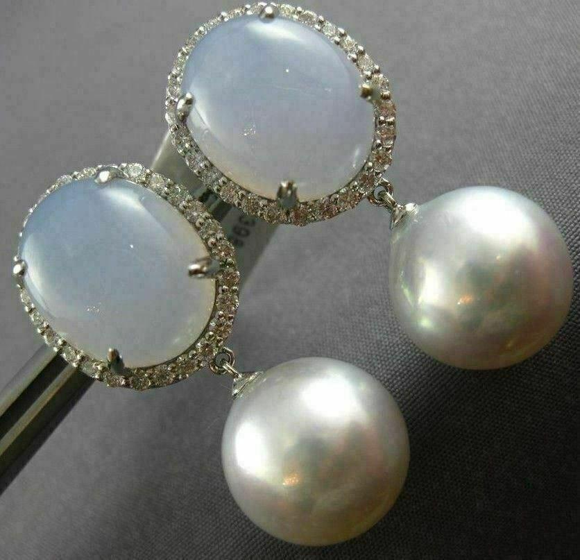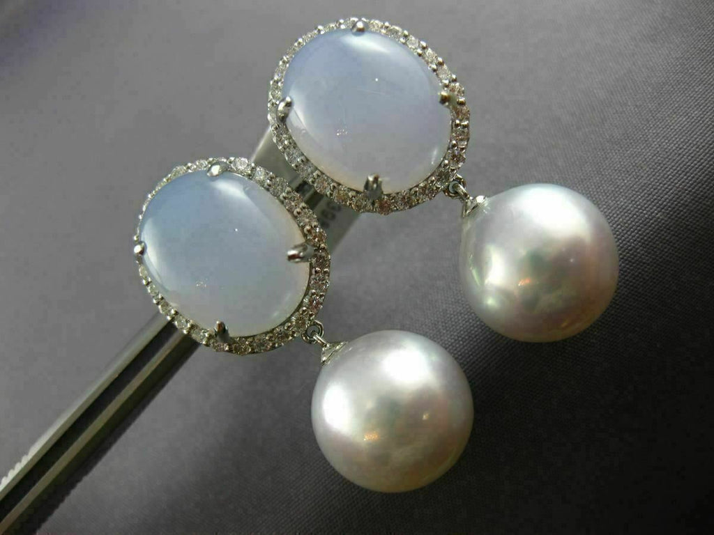 LARGE 11CT DIAMOND AAA BLUE CHALCEDONY & SOUTH SEA PEARL 18K WHITE GOLD EARRINGS