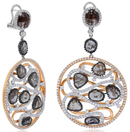 LARGE 12.10CT WHITE ICE & SLICE DIAMOND 18KT WHITE & ROSE GOLD HANGING EARRINGS