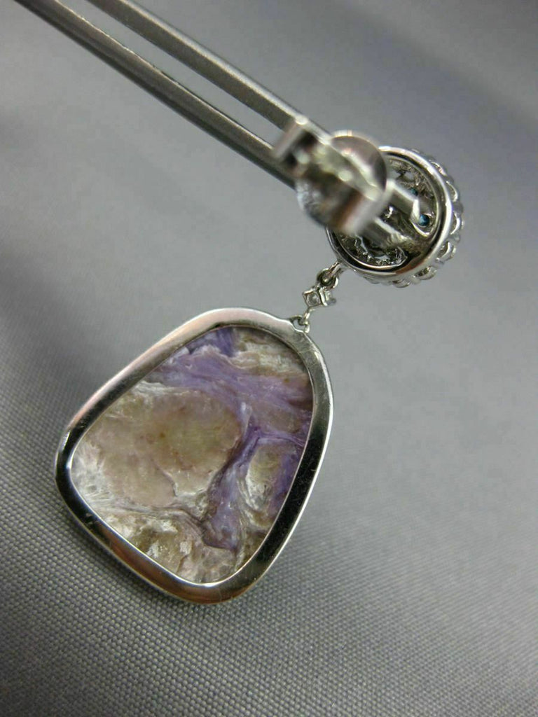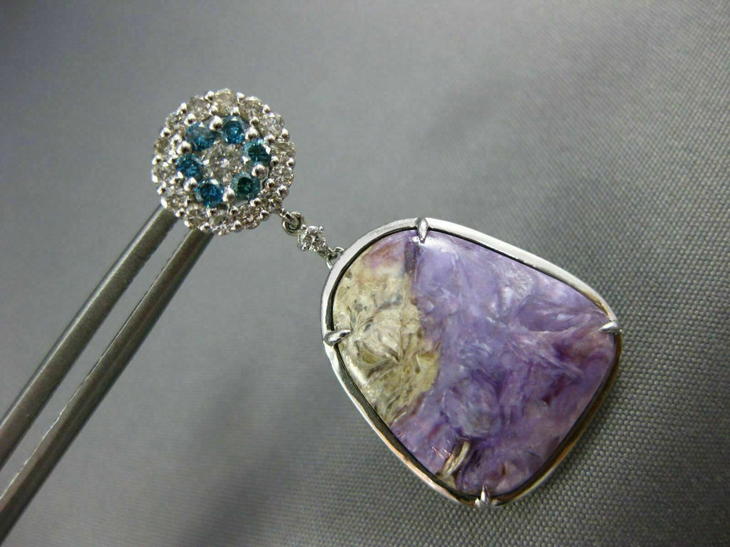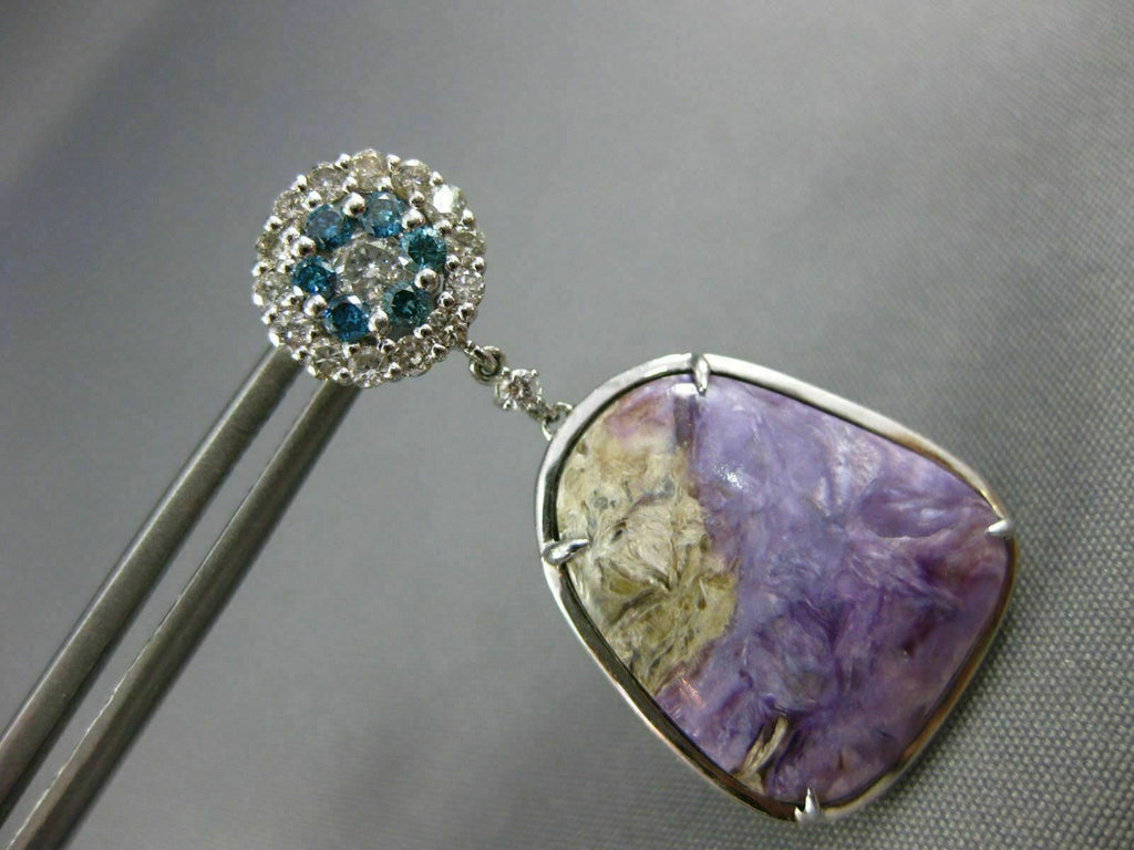 LARGE 12.8CT WHITE & BLUE DIAMOND & AAA AMETHYST 14K WHITE GOLD HANGING EARRINGS