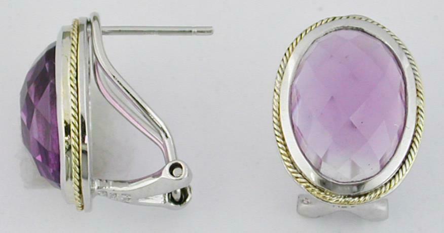 LARGE 14KT YELLOW GOLD AND 925 STERLING SILVER CLIP ON HANGING EARRINGS. 3D CLASIC DESIGN. AAA EXTRA FACETED OVAL AMETHYSTS ARE 12 CARATS. WRITTEN APPRAISAL AVAILABLE. COMES IN A PRESENTABLE GIFT BOX.