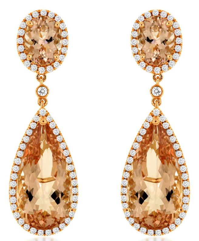 LARGE 13.35CT DIAMOND & AAA MORGANITE 14KT ROSE GOLD PEAR SHAPE & ROUND EARRINGS