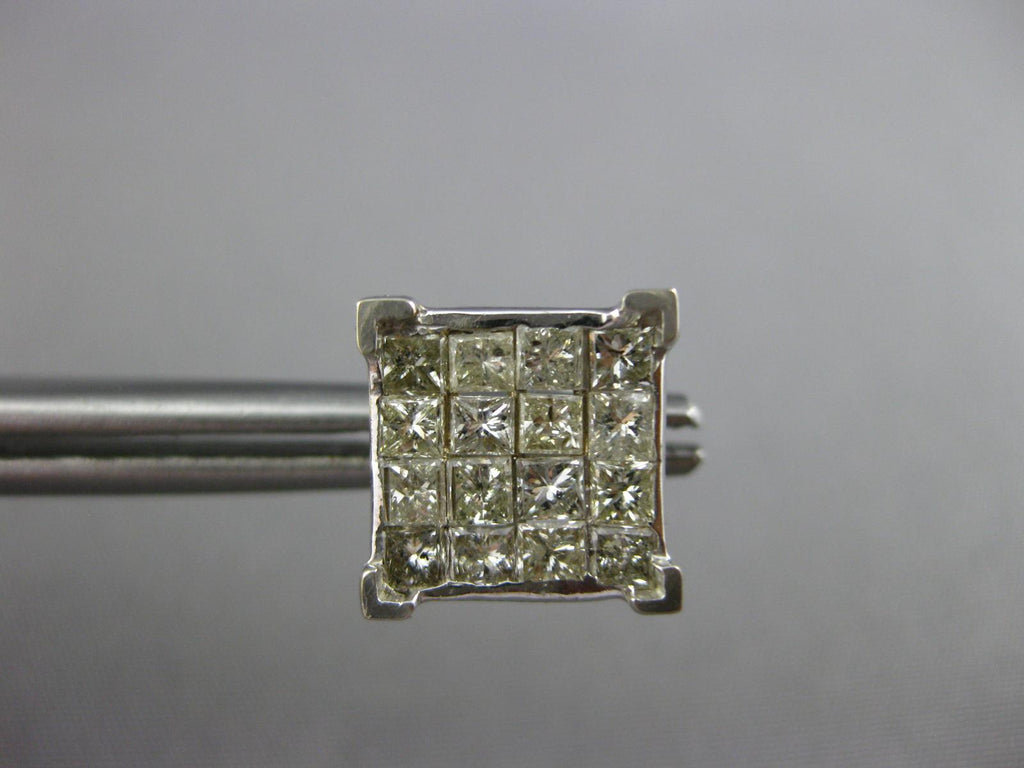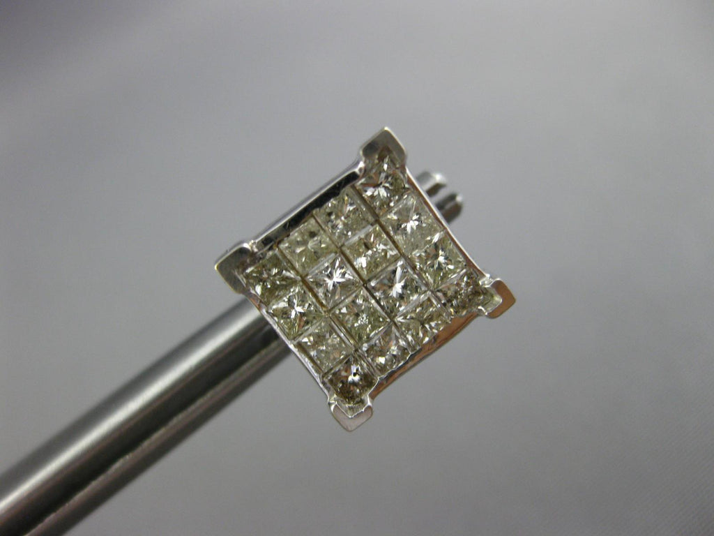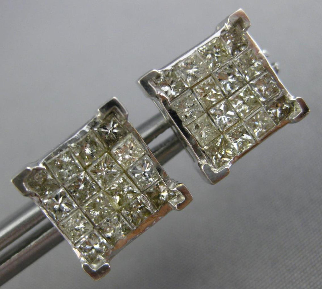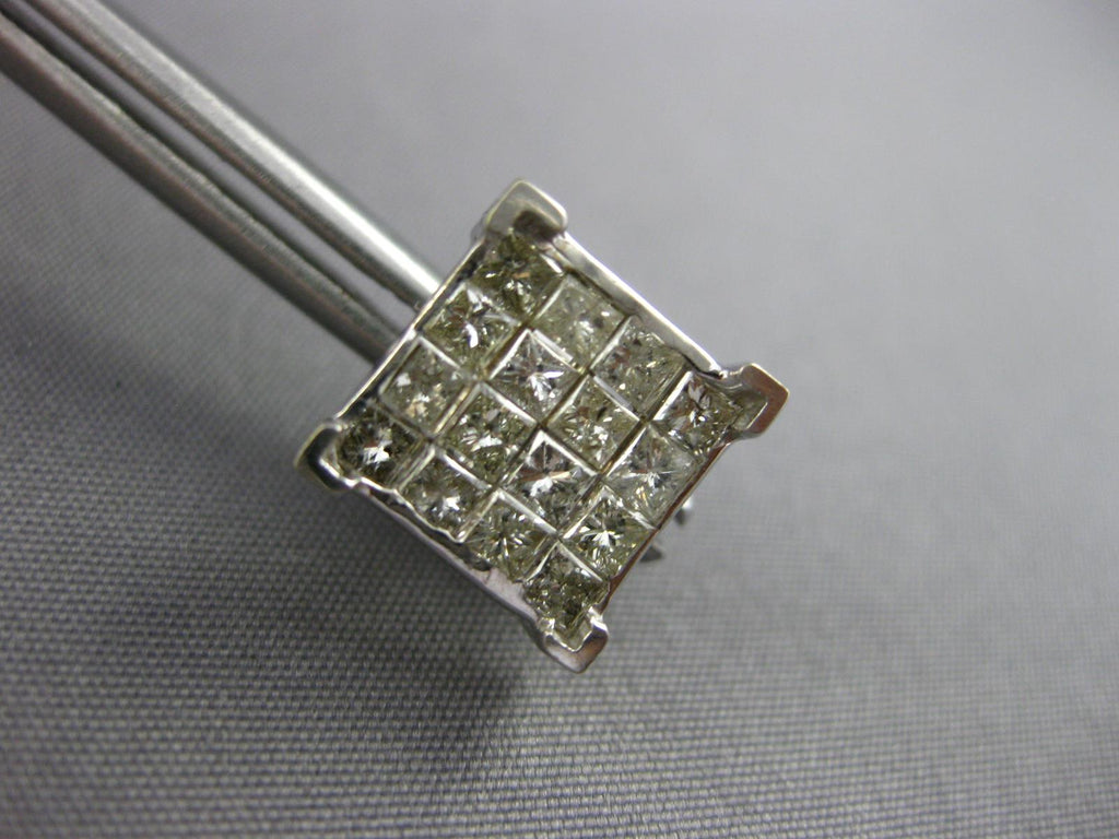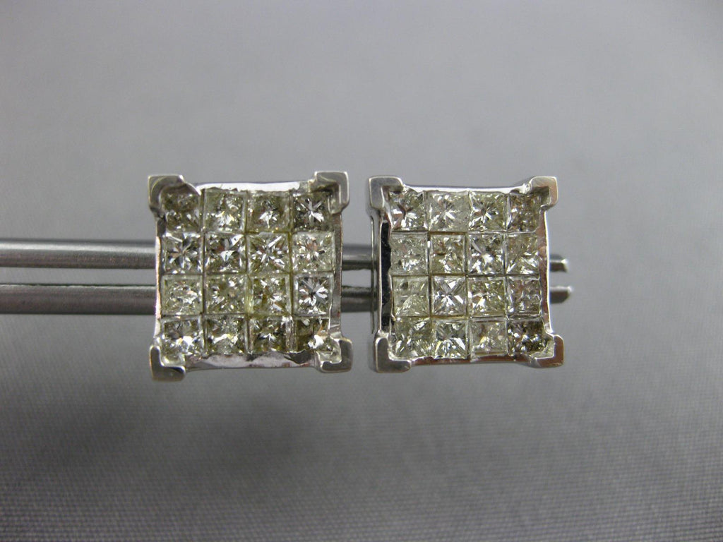 LARGE 1.40CT DIAMOND 14KT WHITE GOLD 3D PRINCESS INVISIBLE SQUARE STUD EARRINGS