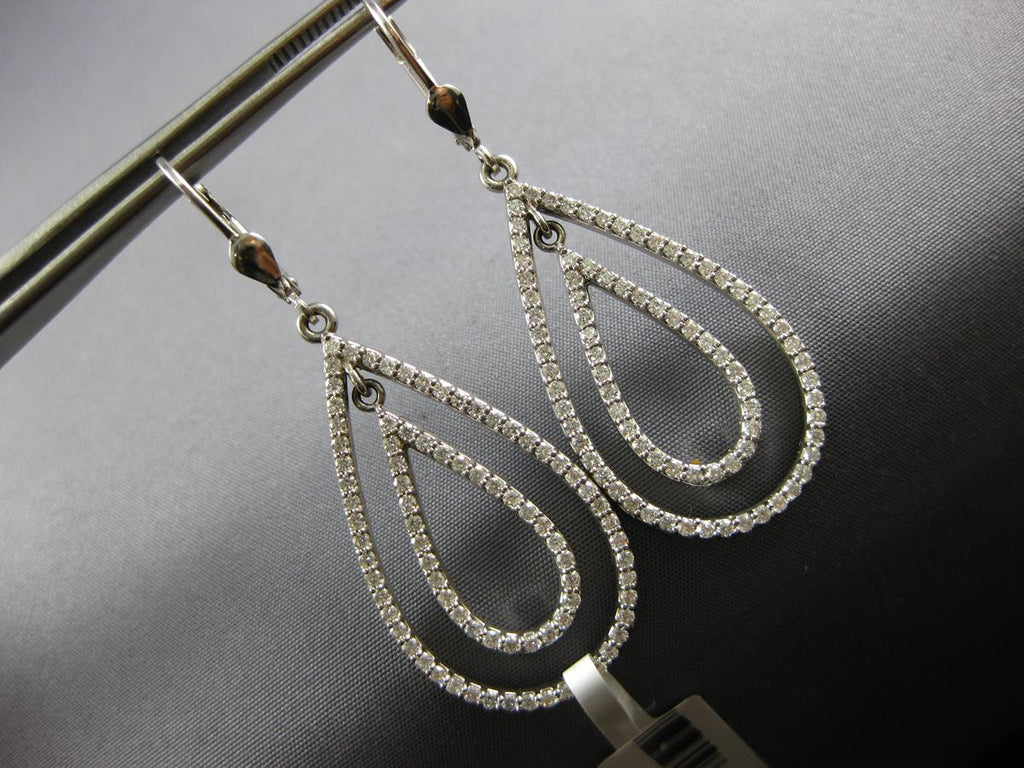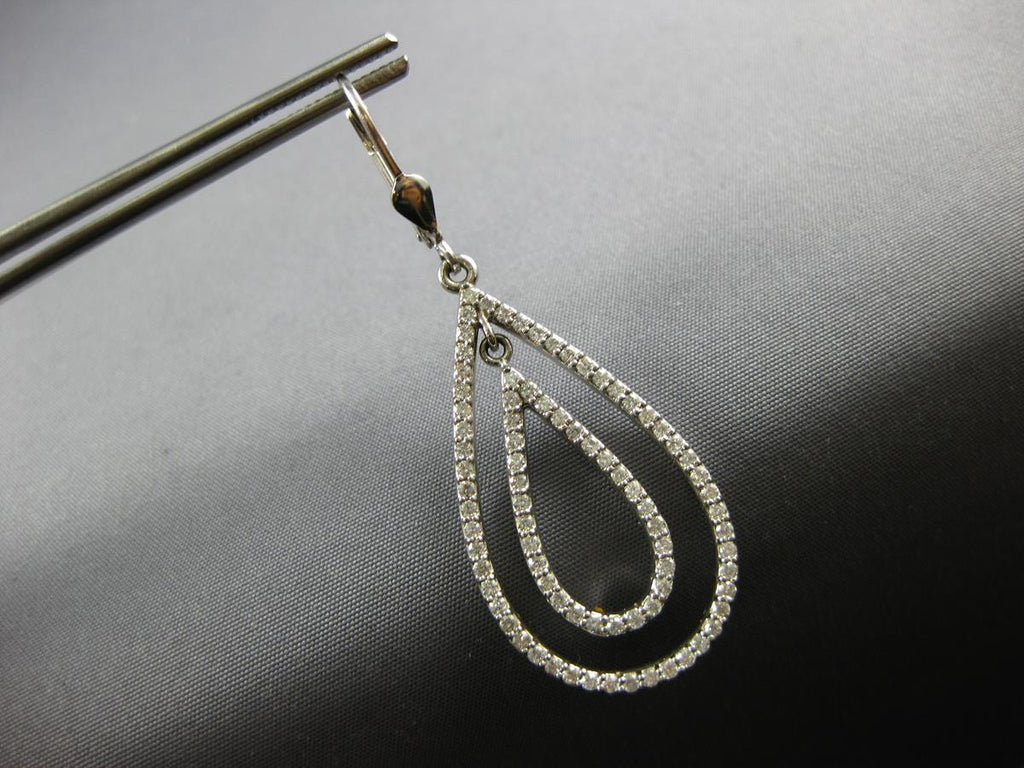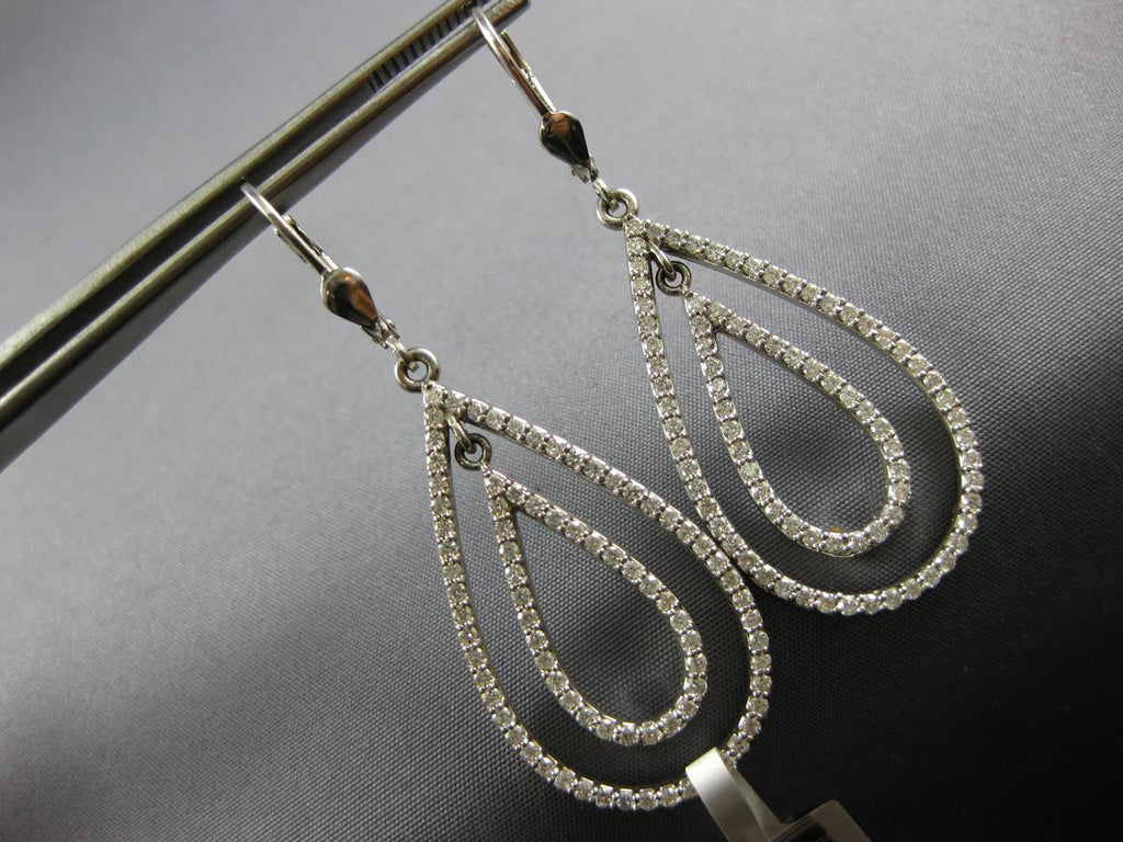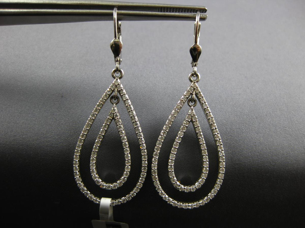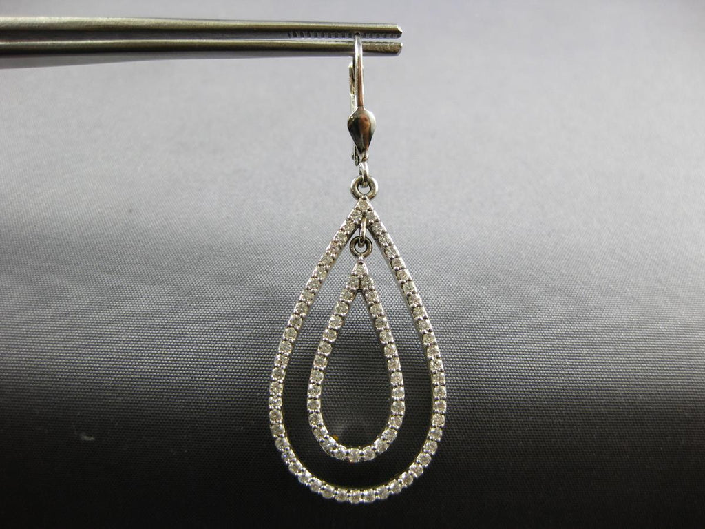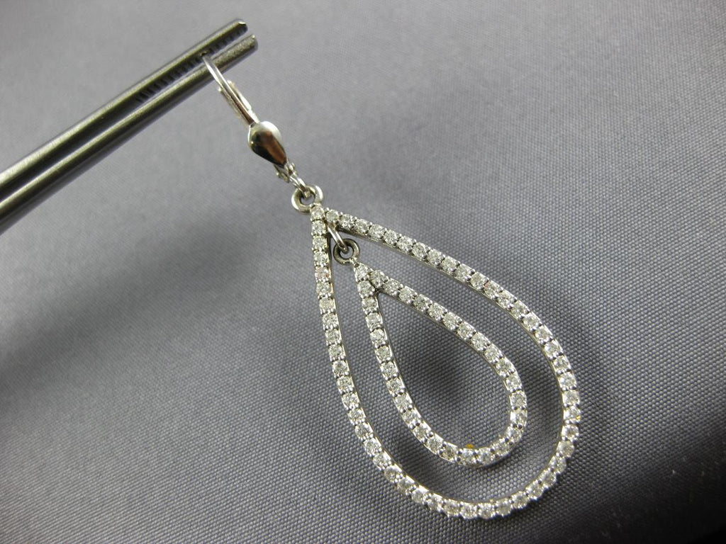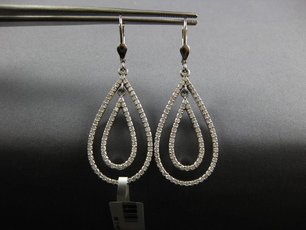 LARGE 1.60CT DIAMOND 14KT WHITE GOLD DOUBLE TEAR DROP LEVERBACK HANGING EARRINGS
