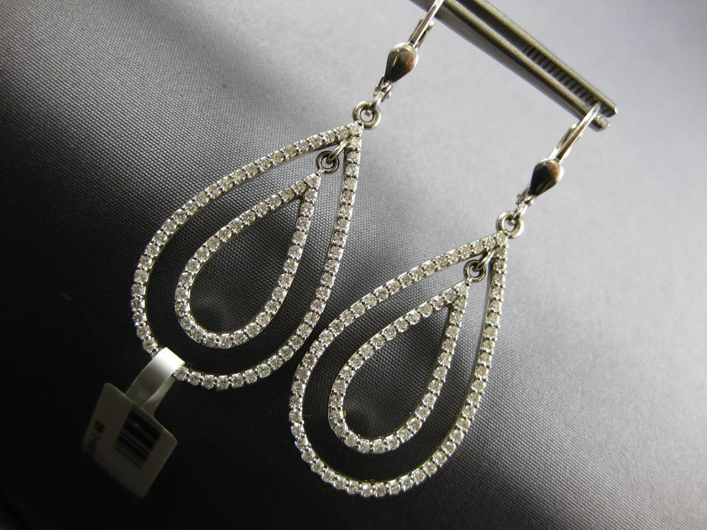 LARGE 14KT WHITE GOLD LEVERBACK HANGING EARRINGS. 3D DOUBLE TEAR DROP DESIGN. DIAMONDS ARE F/G COLOR, VSSI CLARITY 1.60 CARATS. MEASURES 52mm X 19mm. WRITTEN APPRAISAL AVAILABLE. COMES IN A PRESENTABLE GIFT BOX.