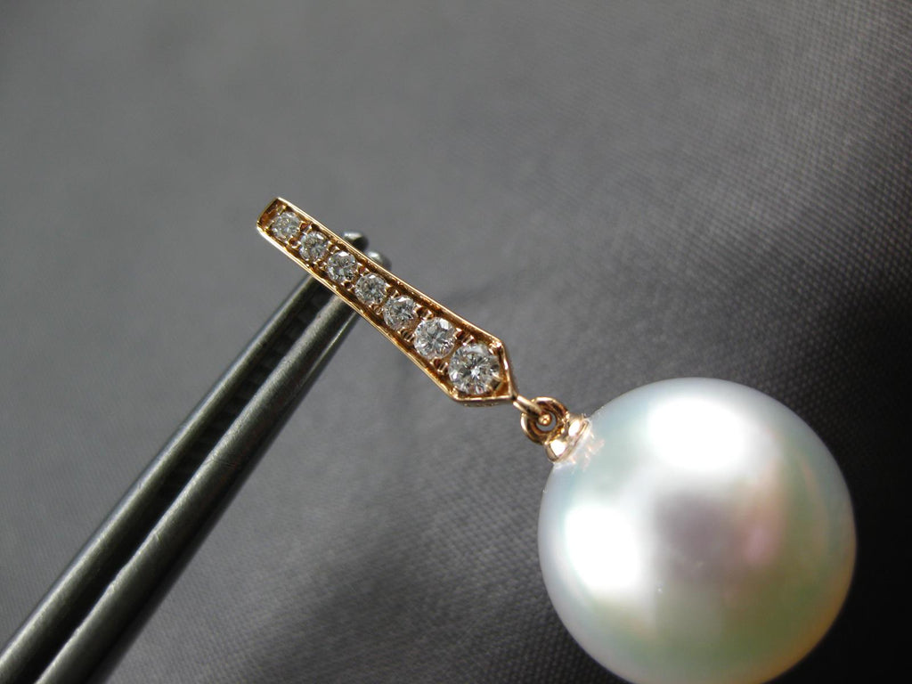 LARGE .16CT DIAMOND & AAA SOUTH SEA PEARL 18K ROSE GOLD JOURNEY HANGING EARRINGS