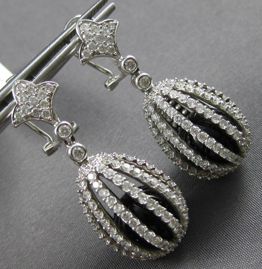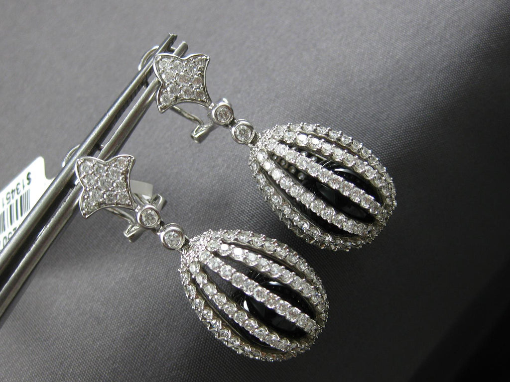 LARGE 17.9CT DIAMOND & AAA BLACK ONYX 14K WHITE GOLD CHANDELIER HANGING EARRINGS