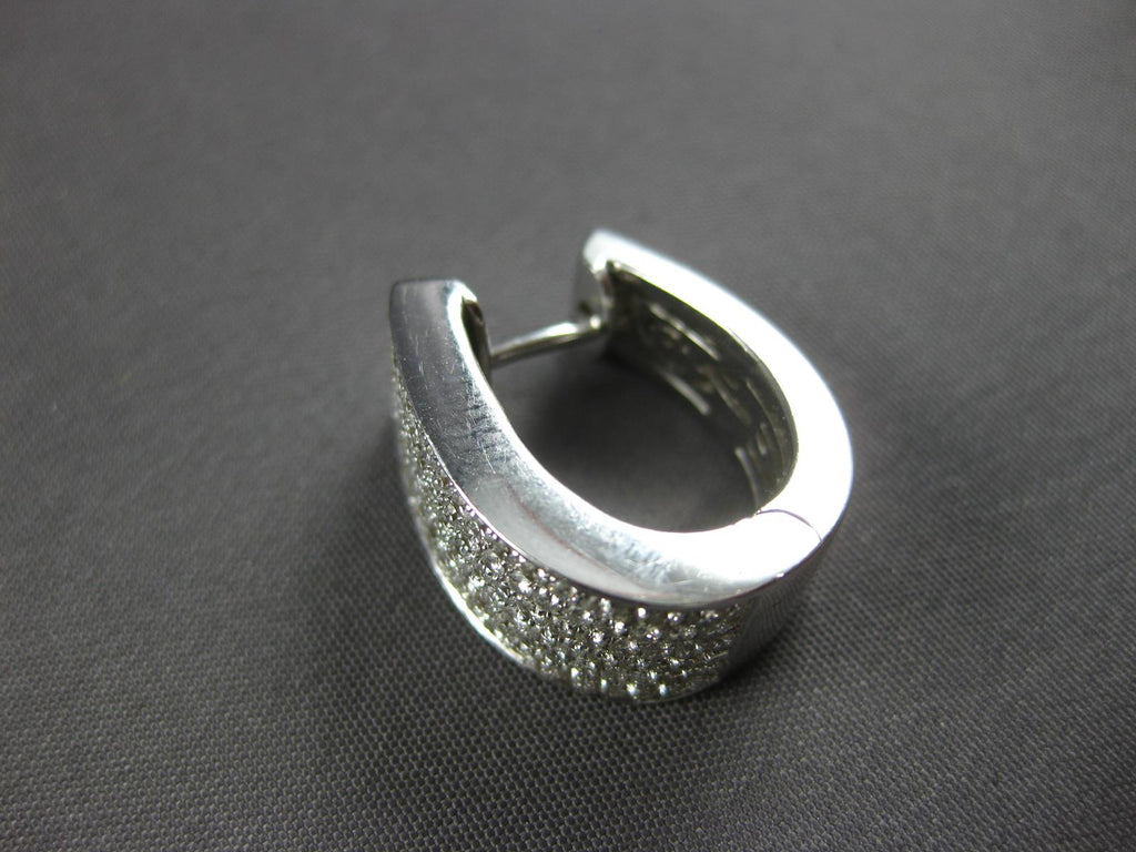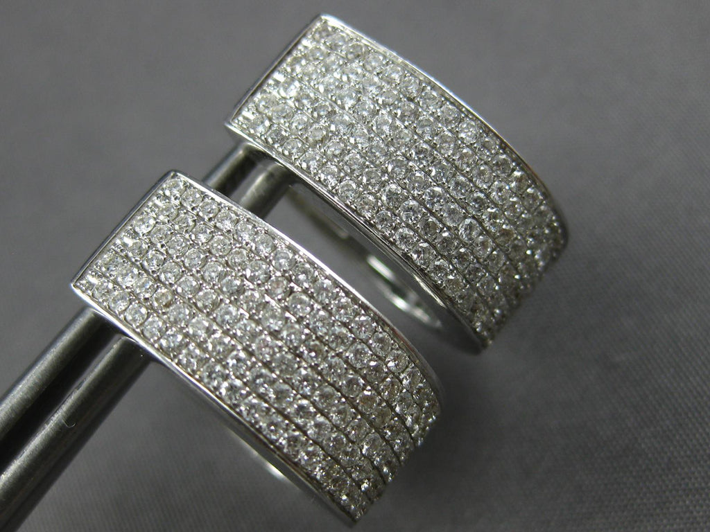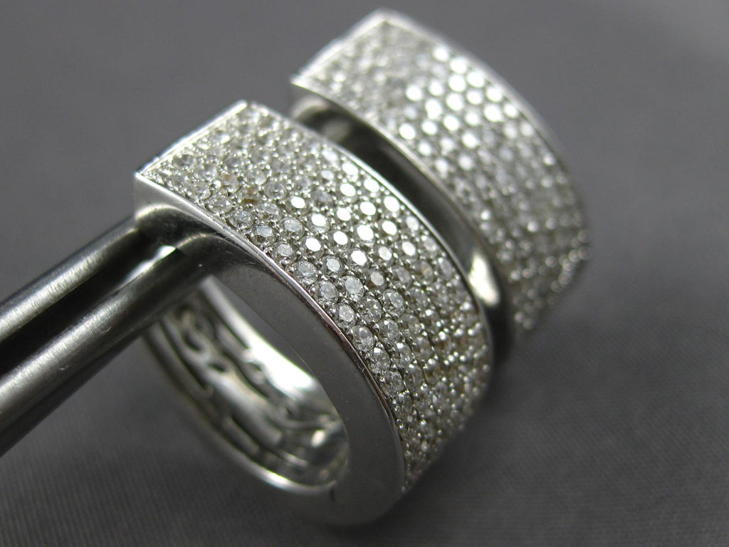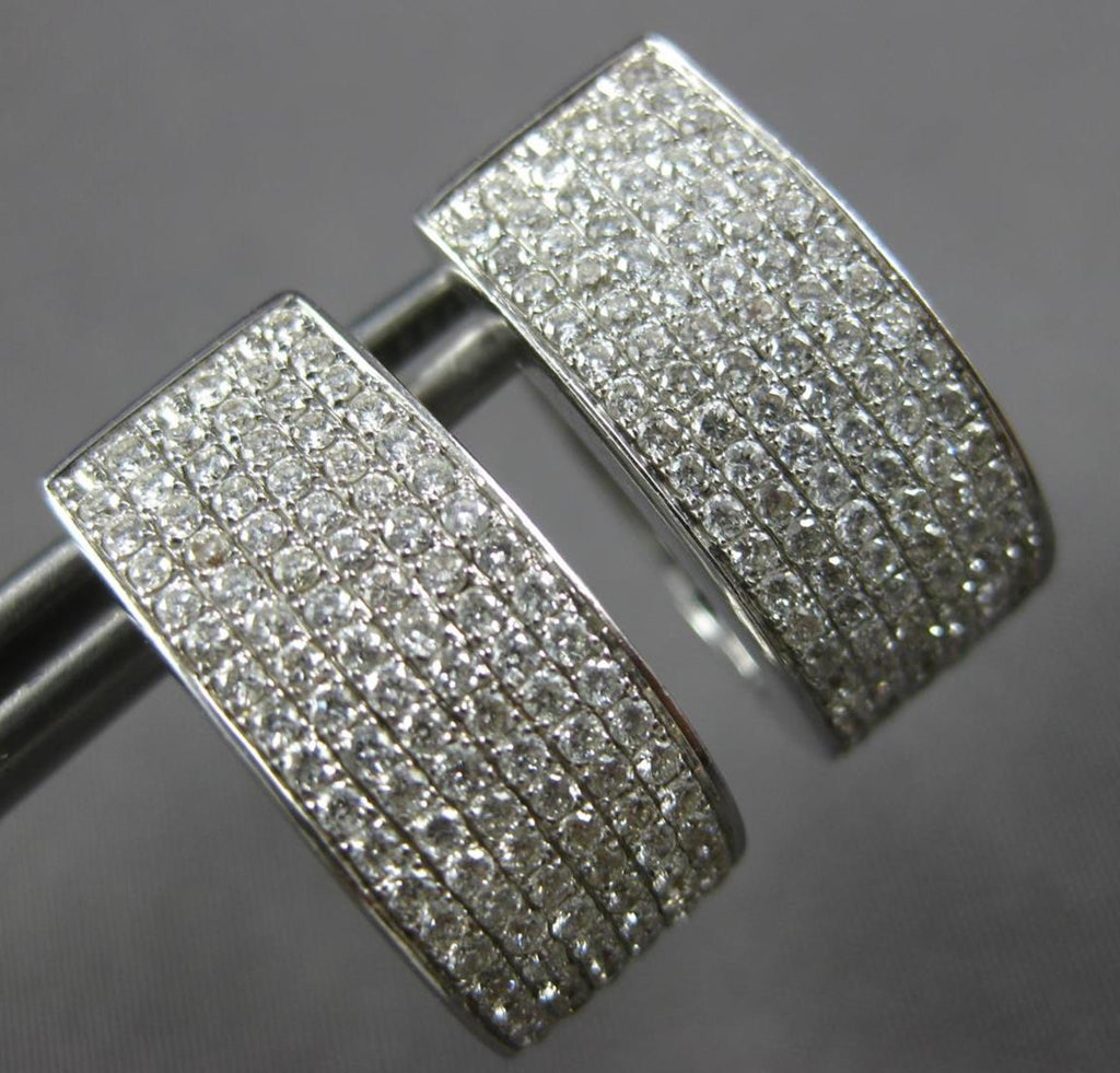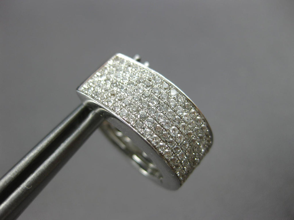 LARGE 1.96CT DIAMOND 18KT WHITE GOLD MULTI ROW PAVE OVAL HUGGIE HANGING EARRINGS