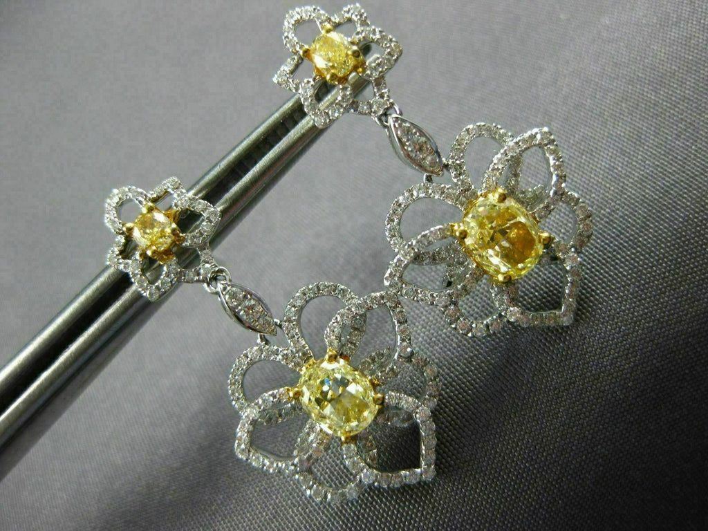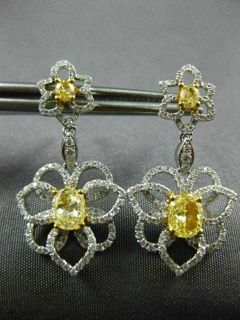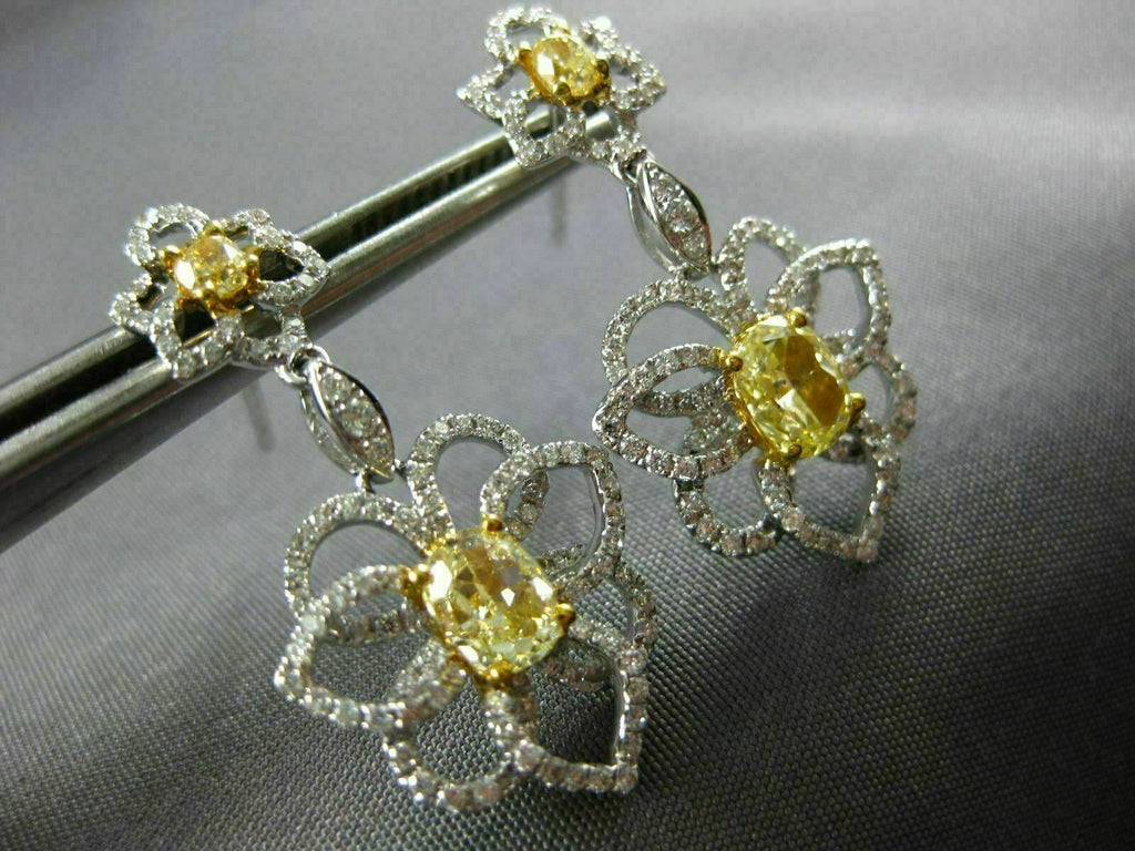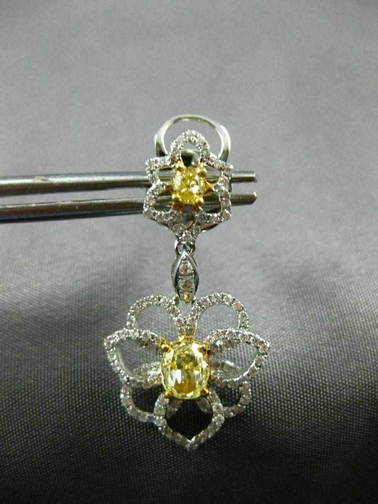 ESTATE LARGE 2.05CT WHITE & FANCY YELLOW 18KT TWO TONE GOLD 3D HANGING EARRINGS