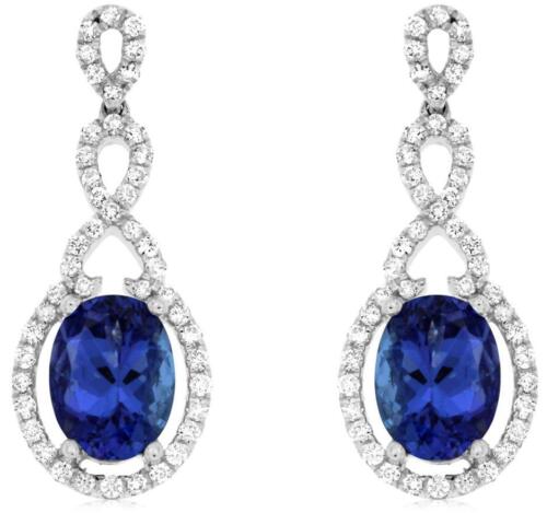 LARGE 2.07CT DIAMOND & AAA TANZANITE 14KT WHITE GOLD OVAL HALO HANGING EARRINGS