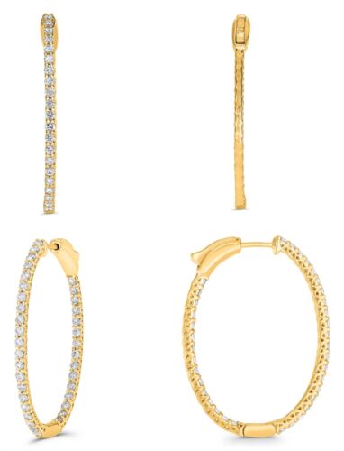 LARGE 2.0CT DIAMOND 14K YELLOW GOLD 3D INSIDE OUT HOOP OVAL FUN HANGING EARRINGS