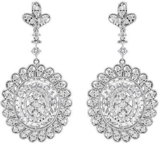 LARGE 2.15CT DIAMOND 18KT WHITE GOLD 3D CLUSTER FILIGREE FLOWER HANGING EARRINGS