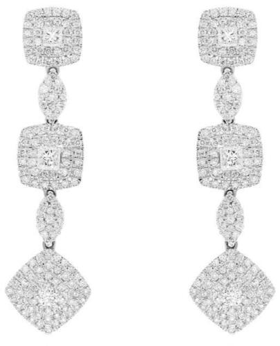 LARGE 2.18CT DIAMOND 14KT WHITE GOLD 3D PRINCESS & ROUND SQUARE HANGING EARRINGS