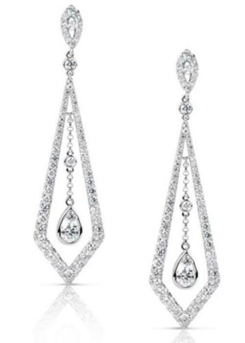LARGE 2.23CT DIAMOND 14KT WHITE GOLD 3D TEAR DROP CHANDELIER HANGING EARRINGS