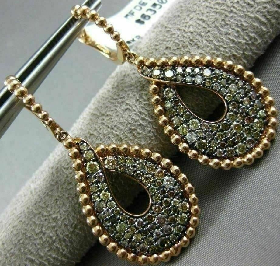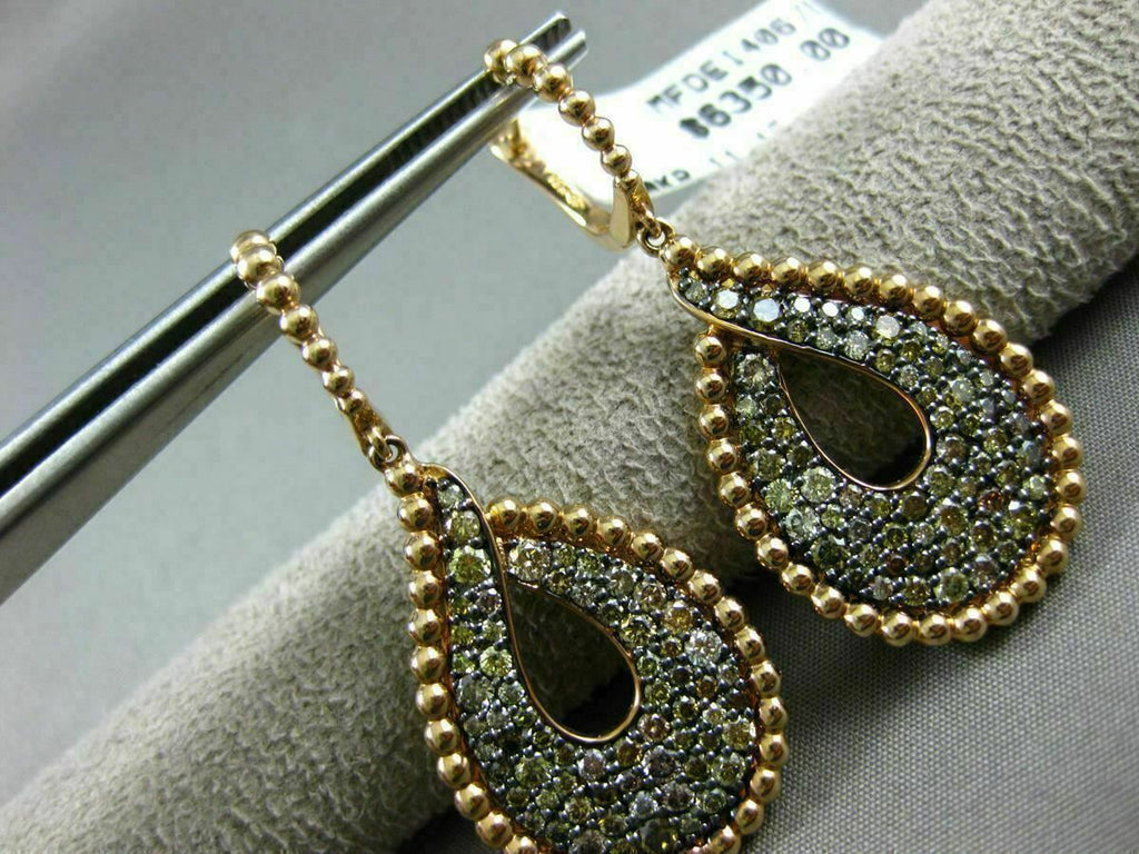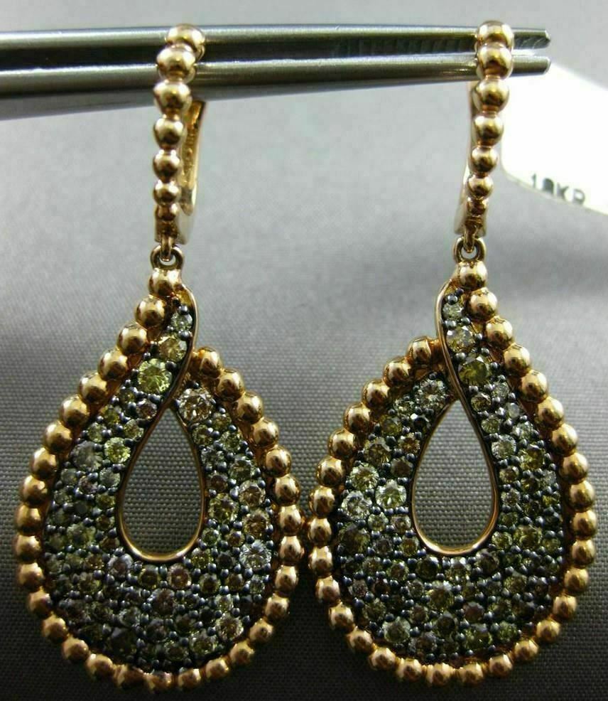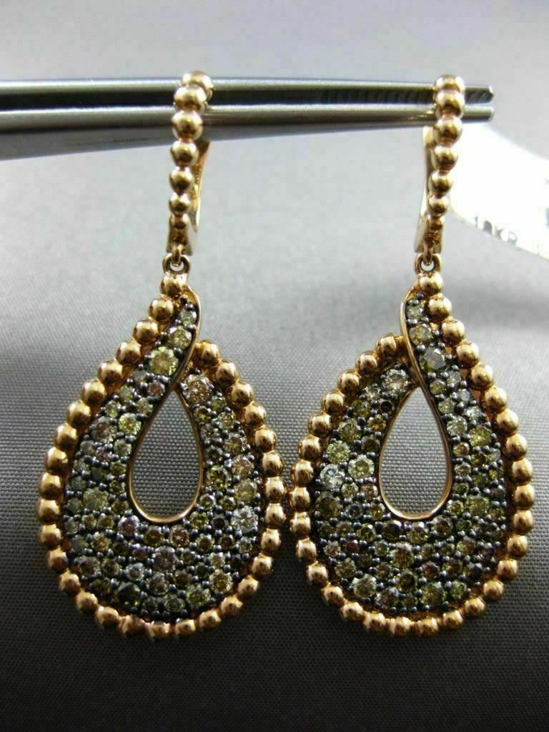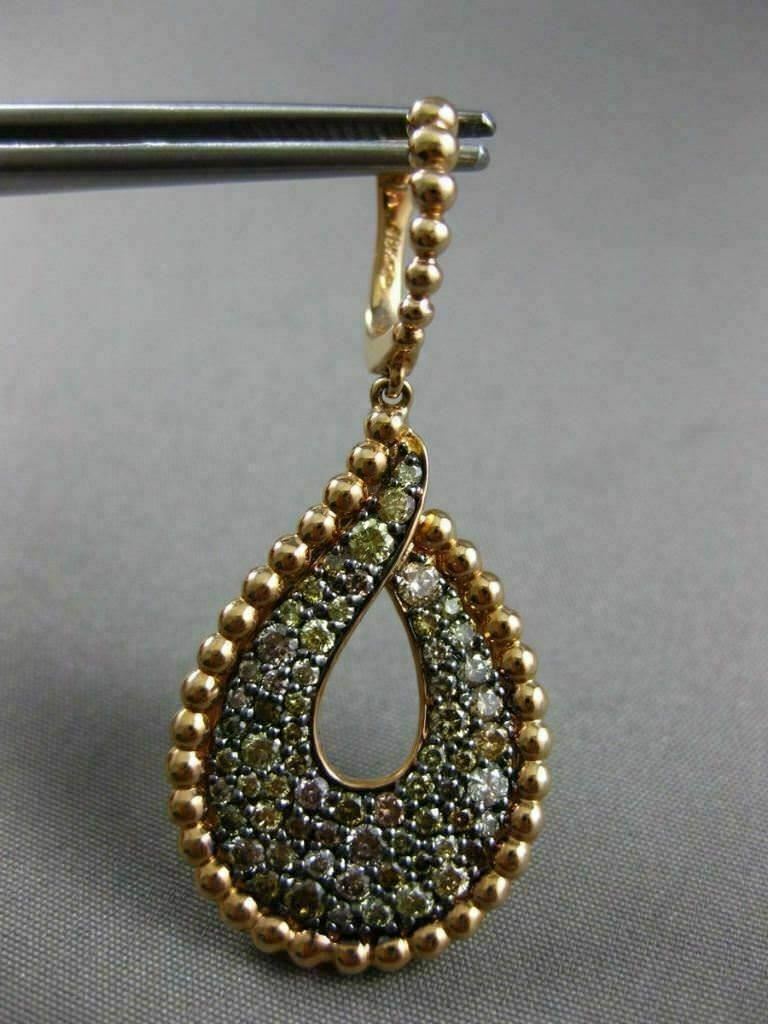 LARGE 2.24CT MULTI COLOR DIAMOND 18K ROSE GOLD BEADED TEAR DROP HANGING EARRINGS