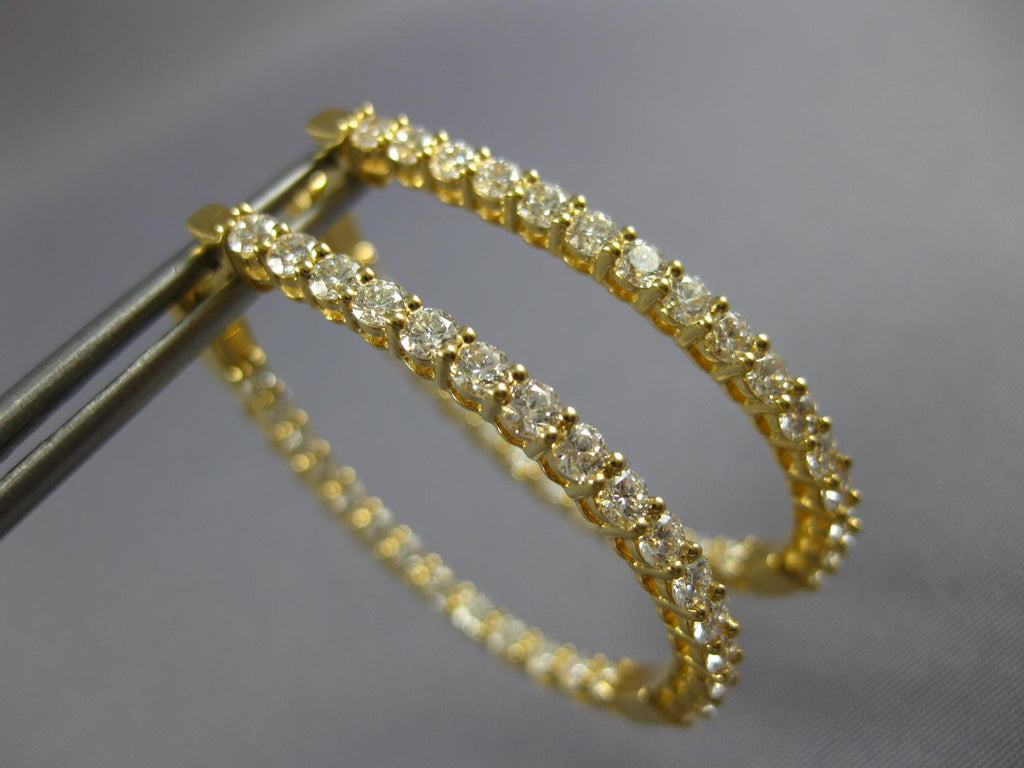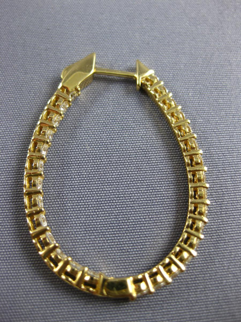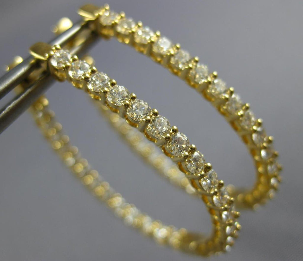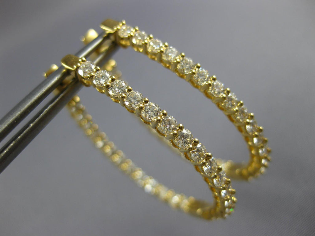 LARGE 2.30CT DIAMOND 18KT YELLOW GOLD INSIDE OUT SHARE PRONG OVAL HOOP EARRINGS