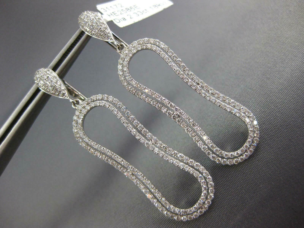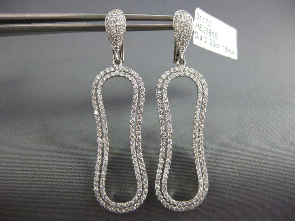 LARGE 2.33CT DIAMOND 18KT WHITE GOLD 3D OVAL INFINITY CLIP ON HANGING EARRINGS