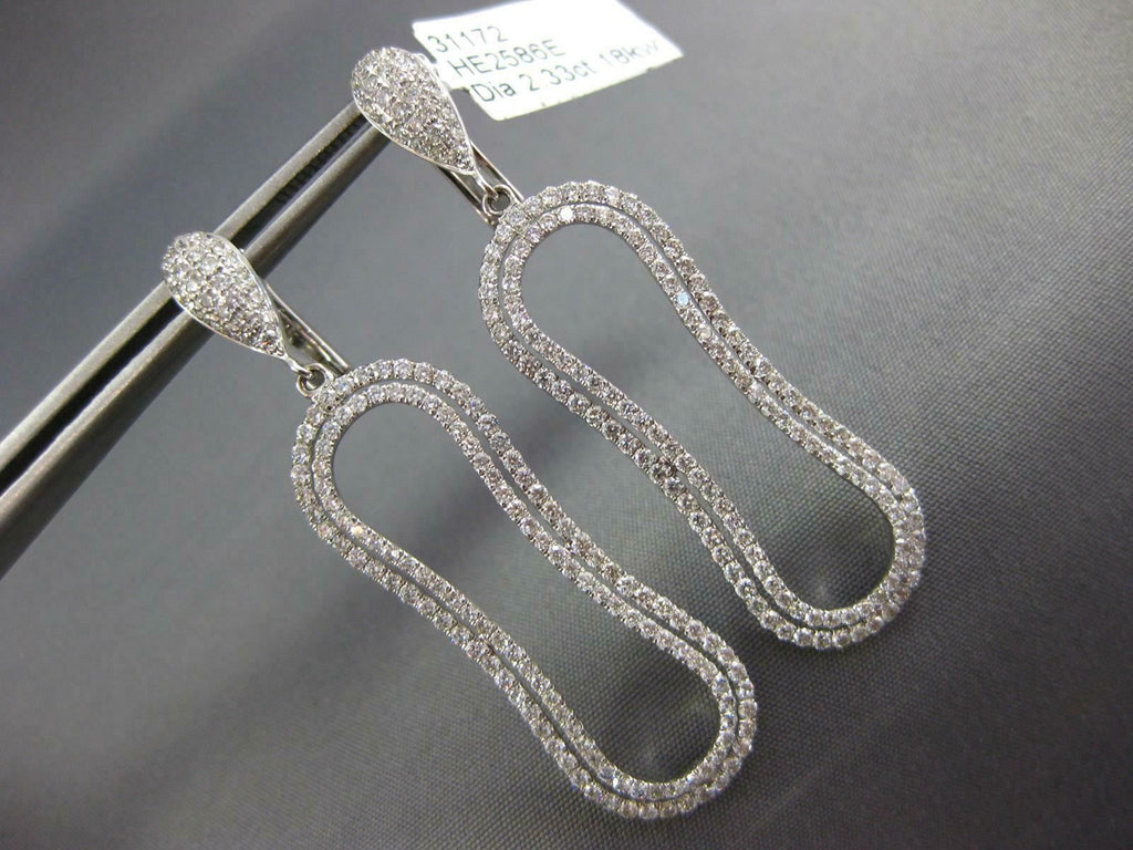 LARGE 18KT WHITEGOLD HANGING CLIP ONEARRINGS. 3D DOUBLE HALO INFINITY OVALDESIGN. DIAMONDS ARE F/G COLOR, VSSI CLARITY 2.33 CARATS.MEASURES 50mm X 13mm. WRITTEN APPRAISAL AVAILABLE. COMES IN A PRESENTABLE GIFT BOX.