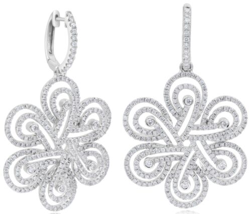 LARGE 2.50CT DIAMOND 14KT WHITE GOLD MULTI INFINITY FLOWER LOVE HANGING EARRINGS