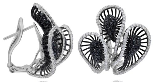 LARGE 2.75CT WHITE & BLACK DIAMOND 18K WHITE GOLD 3D MULTI LEAF CLIP ON EARRINGS