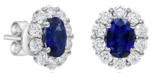 LARGE 2.99CT DIAMOND & AAA SAPPHIRE 18K WHITE GOLD 3D OVAL & ROUND STUD EARRINGS