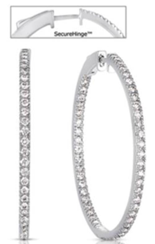 LARGE 14KT WHITE GOLD HOOP HANGING EARRINGS. 3D CLASSIC ROUND INSIDE OUT DESIGN. DIAMONDS ARE F/G COLOR, VSSI CLARITY 2.20 CARATS. MEASURES 2mm WIDE. WRITTEN APPRAISAL AVAILABLE. COMES IN A PRESENTABLE GIFT BOX.