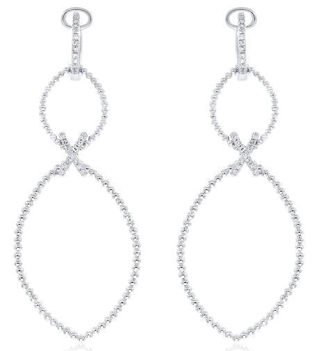 LARGE .22CT DIAMOND 14KT WHITE GOLD 3D CLASSIC INFINITY X LOVE HANGING EARRINGS