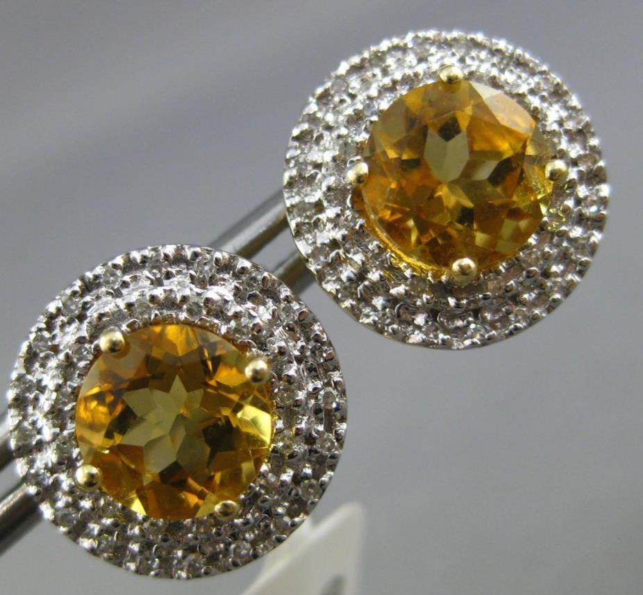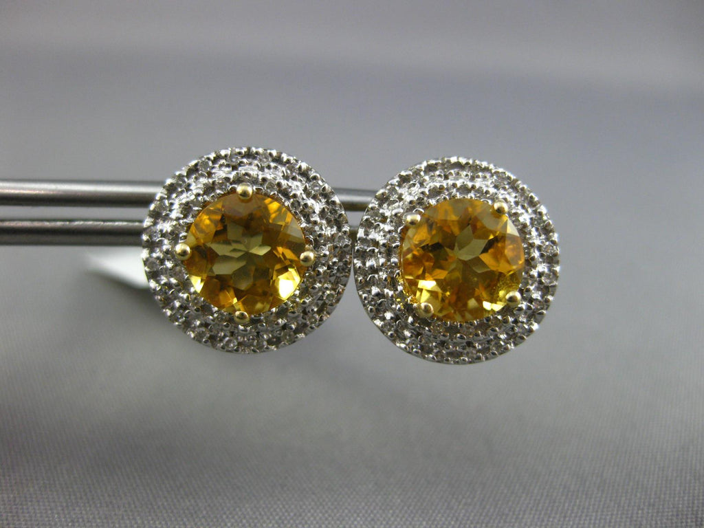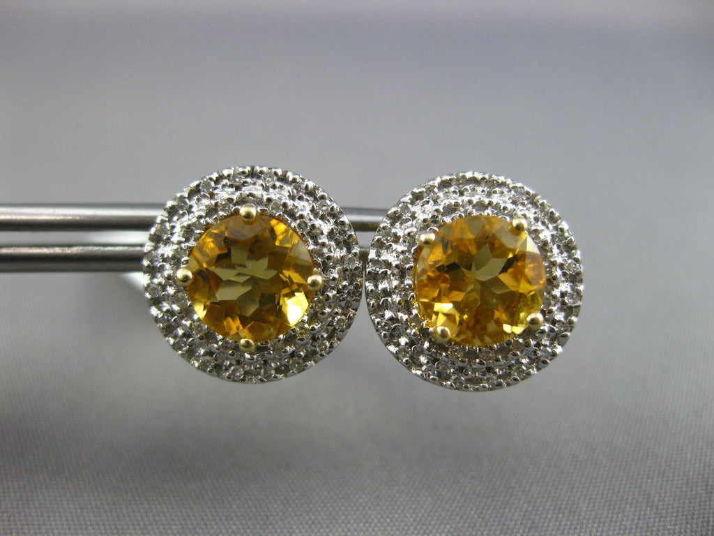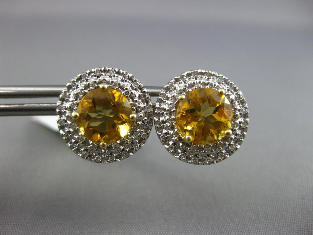 LARGE 2.52CT DIAMOND & AAA CITRINE 14KT YELLOW GOLD 3D ROUND HALO STUD EARRINGS