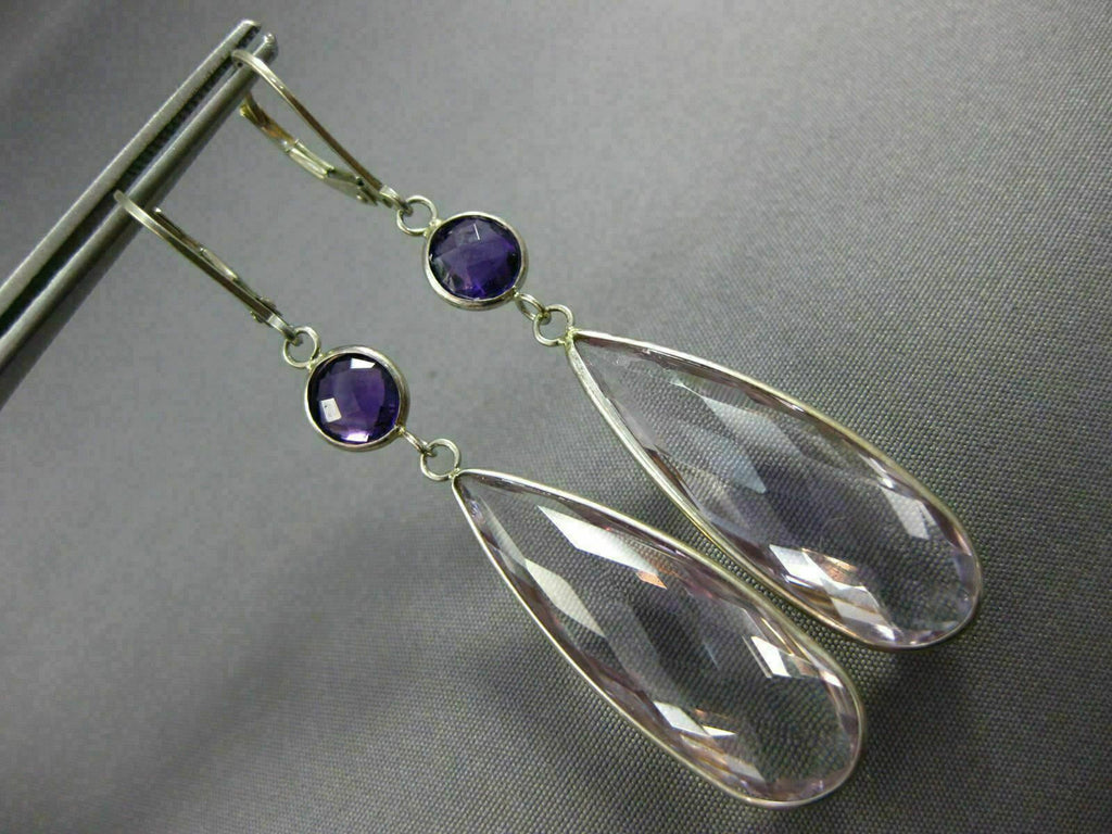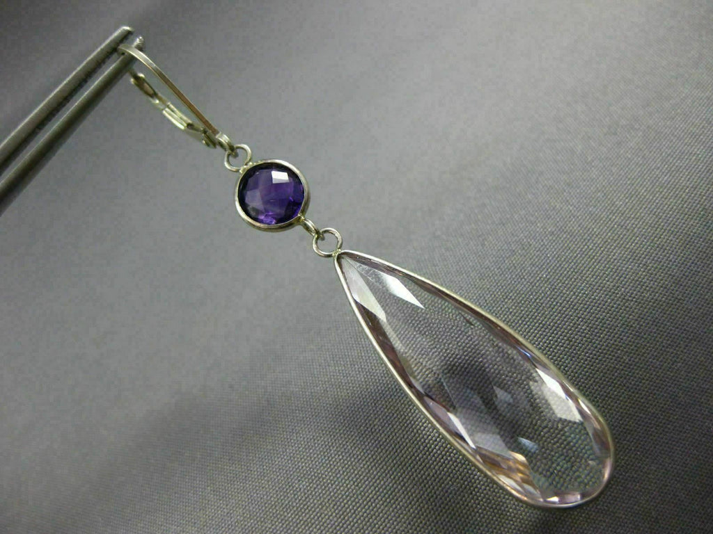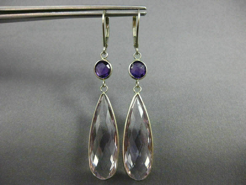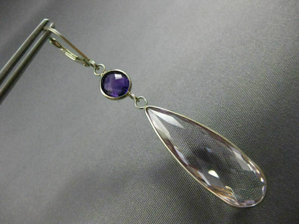 LARGE 26.0CT AMETHYST & PINK AMETHYST 14K WHITE GOLD TEAR DROP HANGING EARRINGS
