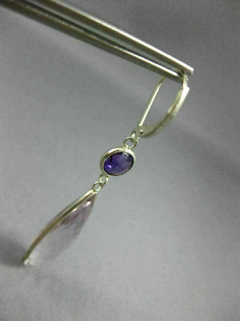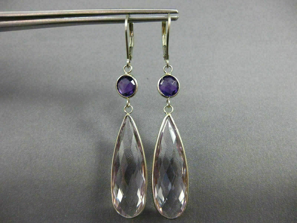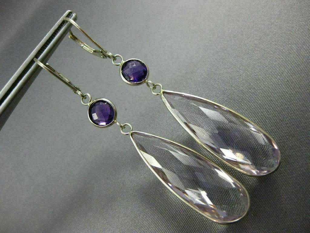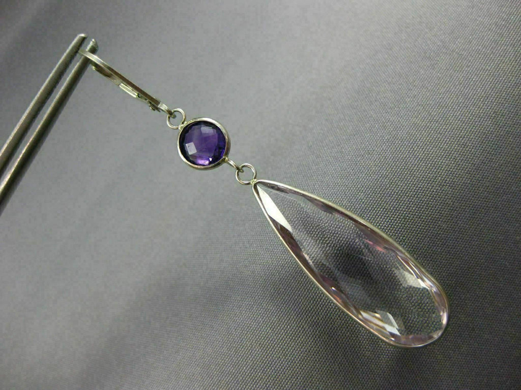 LARGE 26.0CT AMETHYST & PINK AMETHYST 14K WHITE GOLD TEAR DROP HANGING EARRINGS