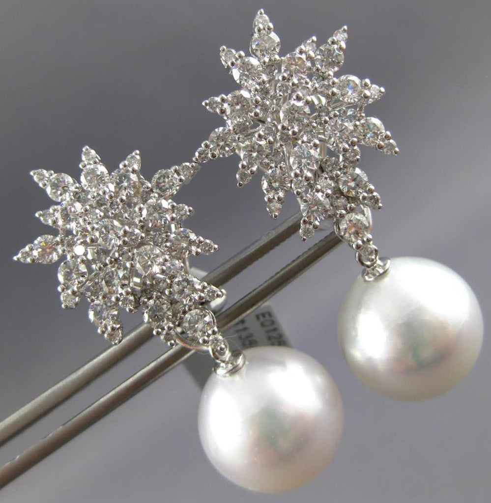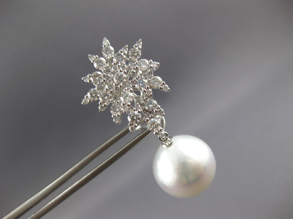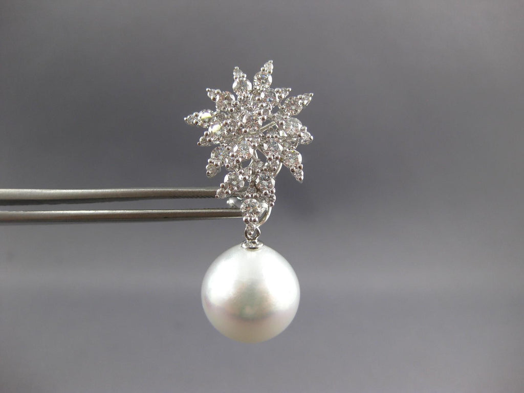 LARGE 2.88CT DIAMOND AAA SOUTH SEA PEARL 18KT WHITE GOLD FLOWER HANGING EARRINGS