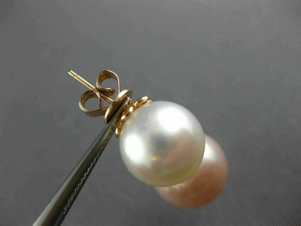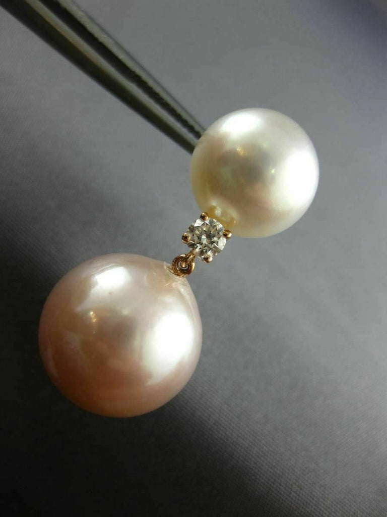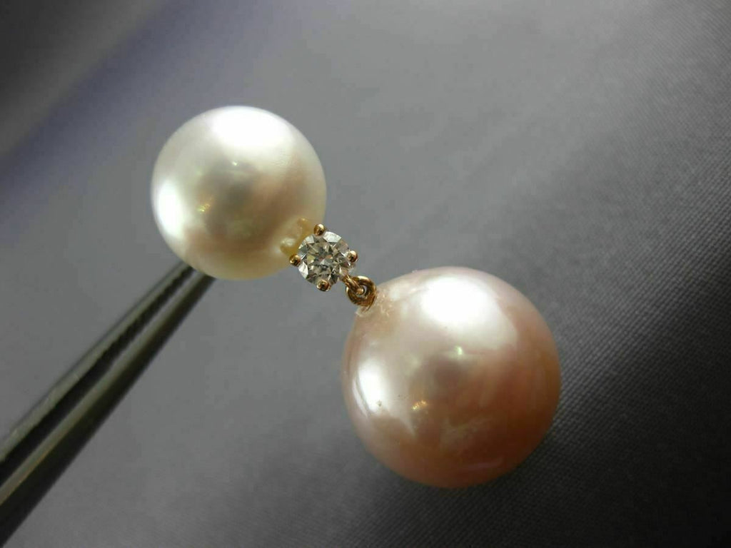 LARGE .28CT DIAMOND AAA WHITE & PINK SOUTH SEA PEARL 18KT ROSE GOLD 3D EARRINGS