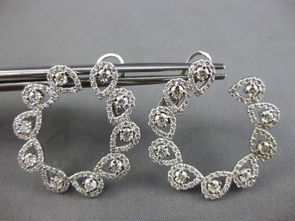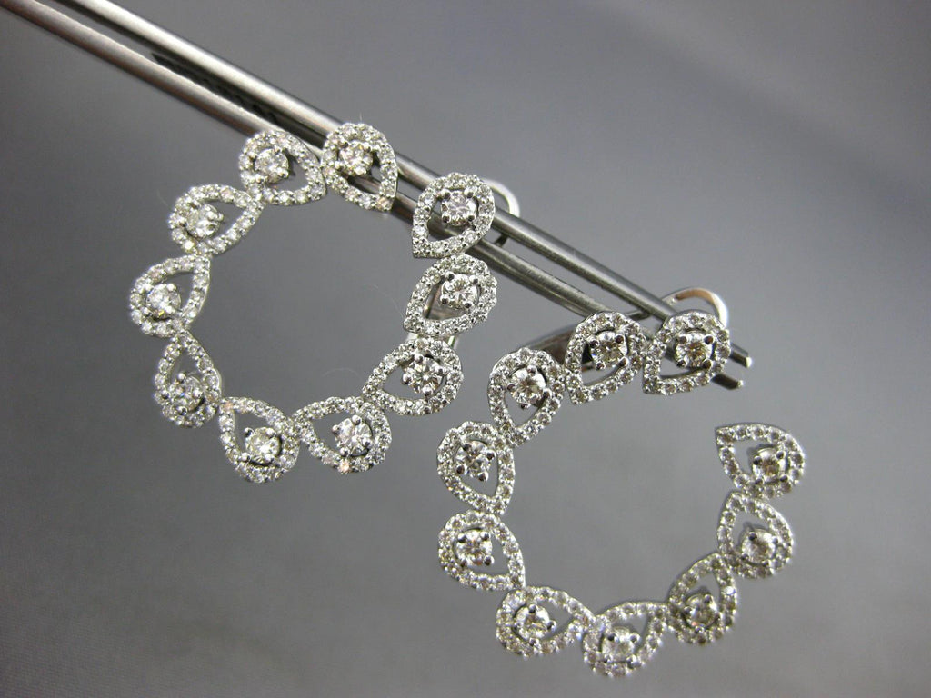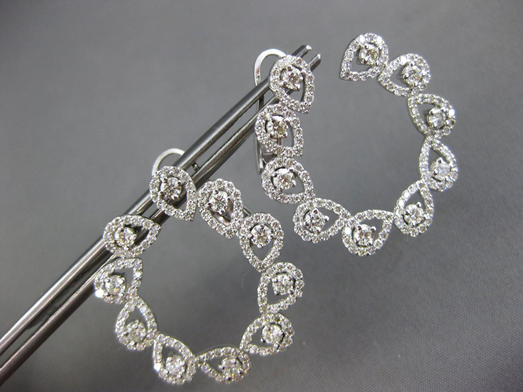 LARGE 14KT WHITE GOLD HOOP CLIP ON HANGING EARRINGS. 3D MULTI LEAF CIRCULAR SIDEWAYS DESIGN. DIAMONDS ARE F/G COLOR, VSSI CLARITY 2.96 CARATS. MEASURES 25mm x 22mm WIDE. WRITTEN APPRAISAL AVAILABLE. COMES IN A PRESENTABLE GIFT BOX.