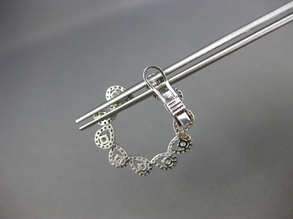 LARGE 2.96CT DIAMOND 14KT WHITE GOLD LEAF CIRCULAR HOOP CLIP ON HANGING EARRINGS
