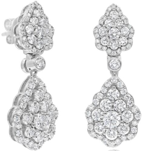 LARGE 3.09CT DIAMOND 14KT WHITE GOLD 3D ROUND CLUSTER TEAR DROP HANGING EARRINGS