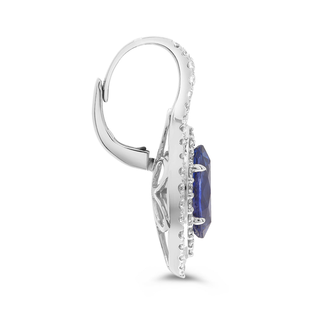 LARGE 18KT WHITE GOLD LEVERBACK HANGING EARRINGS. 3D DOUBLE HALO TEAR DROP DESIGN. ROUND DIAMONDS ARE F/G COLOR, VSSI CLARITY .78 CARATS. AAA MARQUISE SHAPE SAPPHIRES ARE 2.35 CARATS. MEASURES 25mm X 11mm. WRITTEN APPRAISAL AVAILABLE. COMES IN A PRESENTABLE GIFT BOX.