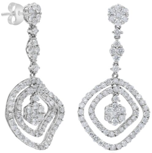 LARGE 3.20CT DIAMOND 18KT WHITE GOLD 3D MULTI FLOWER SQUARE FUN HANGING EARRINGS