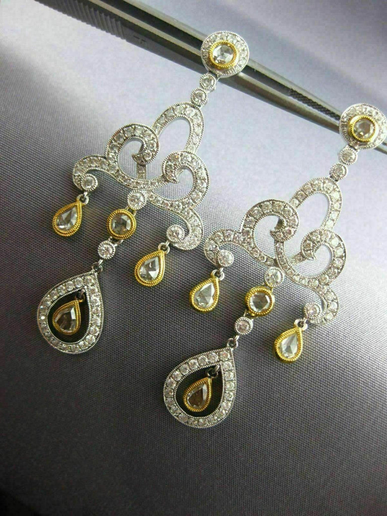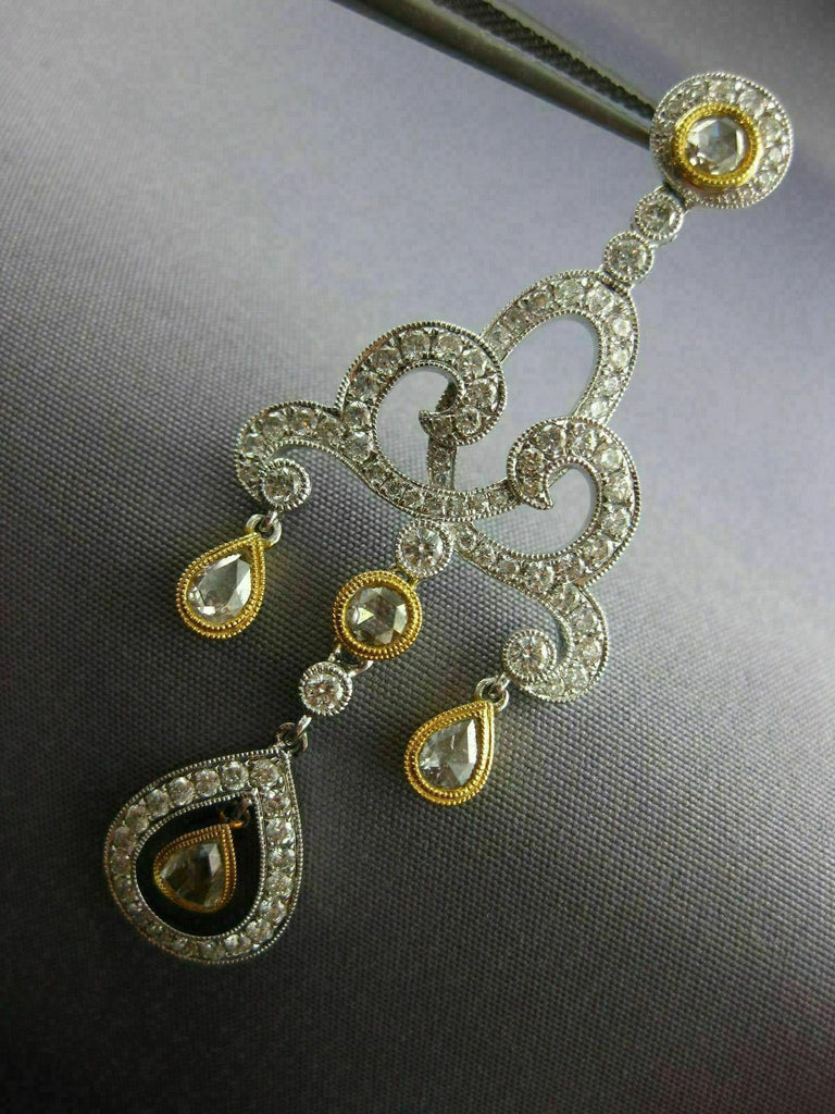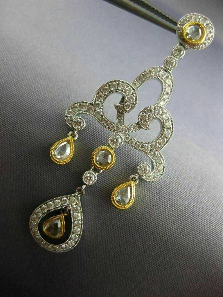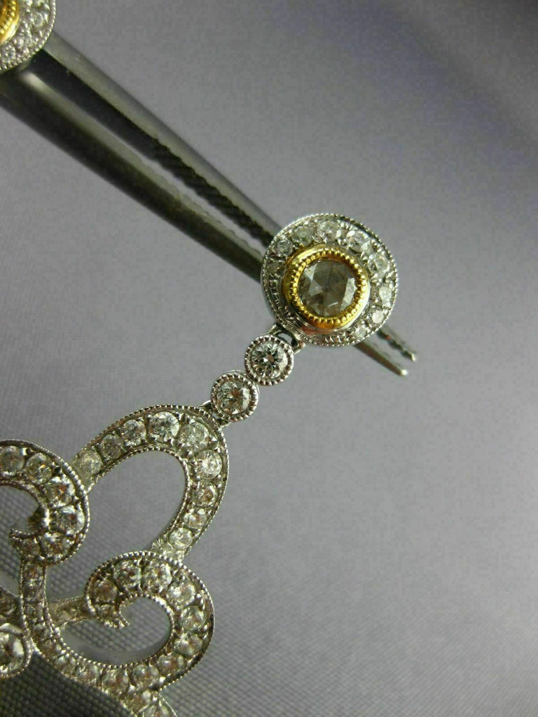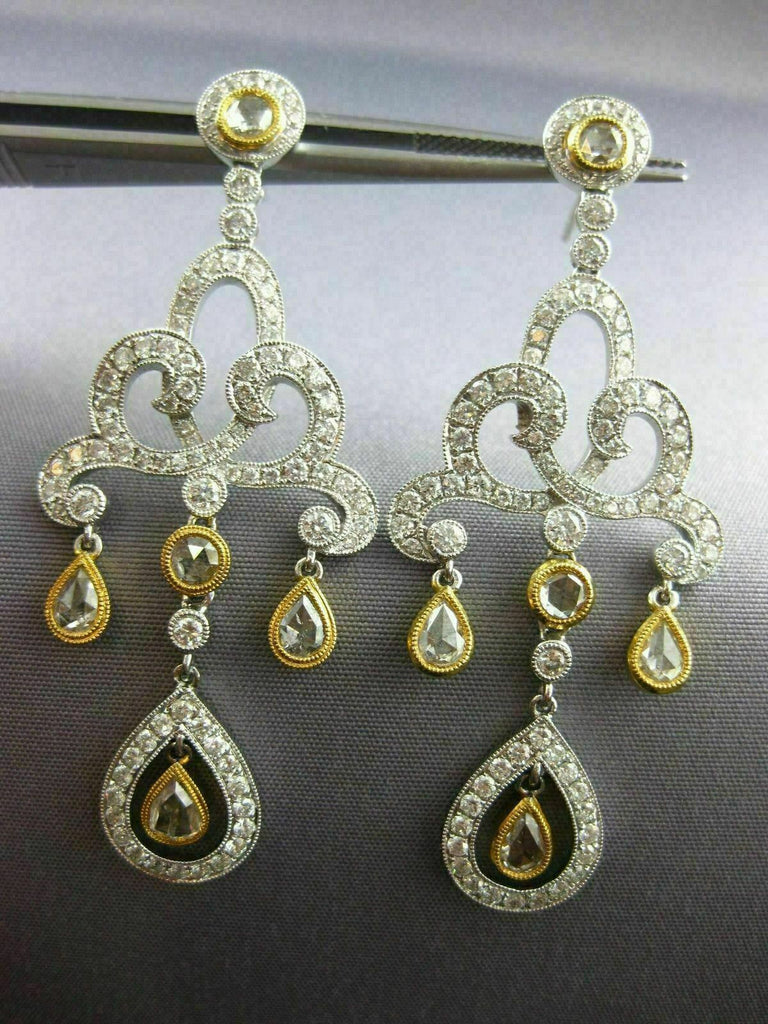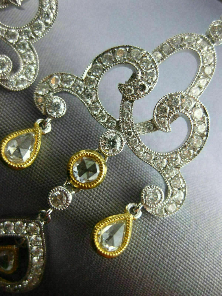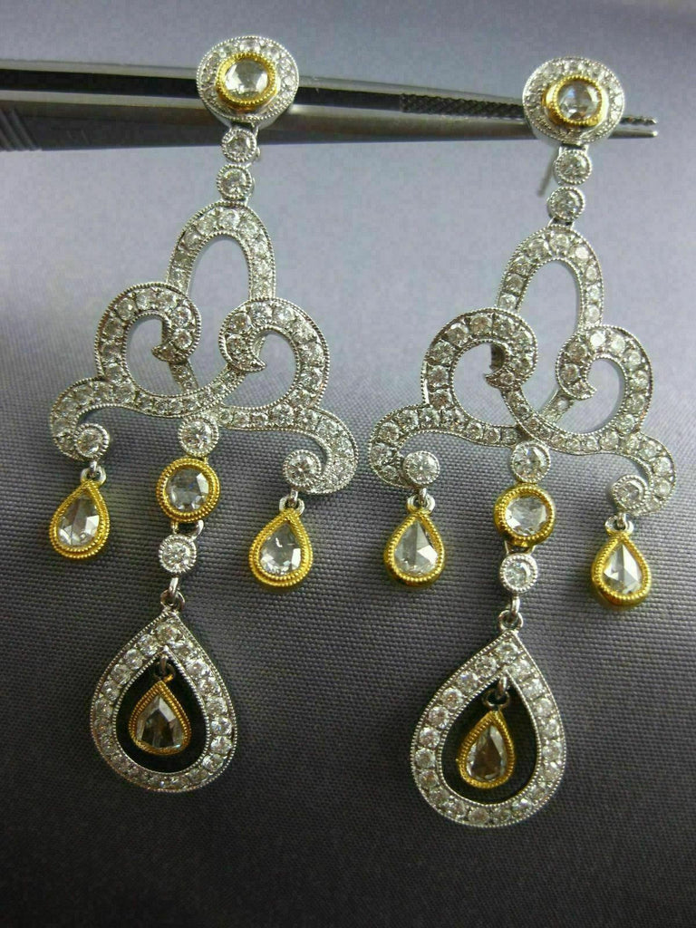 ESTATE LARGE 3.25CT WHITE & FANCY YELLOW DIAMOND 18KT TWO TONE GOLD 3D EARRINGS