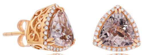 LARGE 3.31CT DIAMOND & AAA MORGANITE 18KT ROSE GOLD 3D TRILLION & ROUND EARRINGS