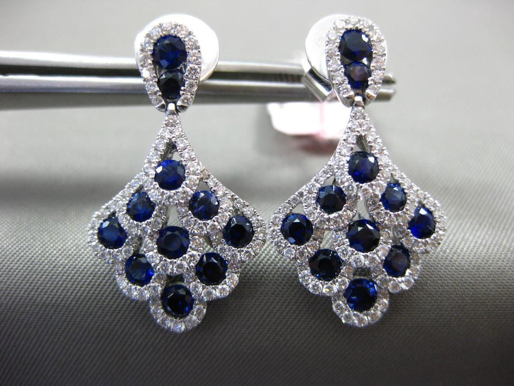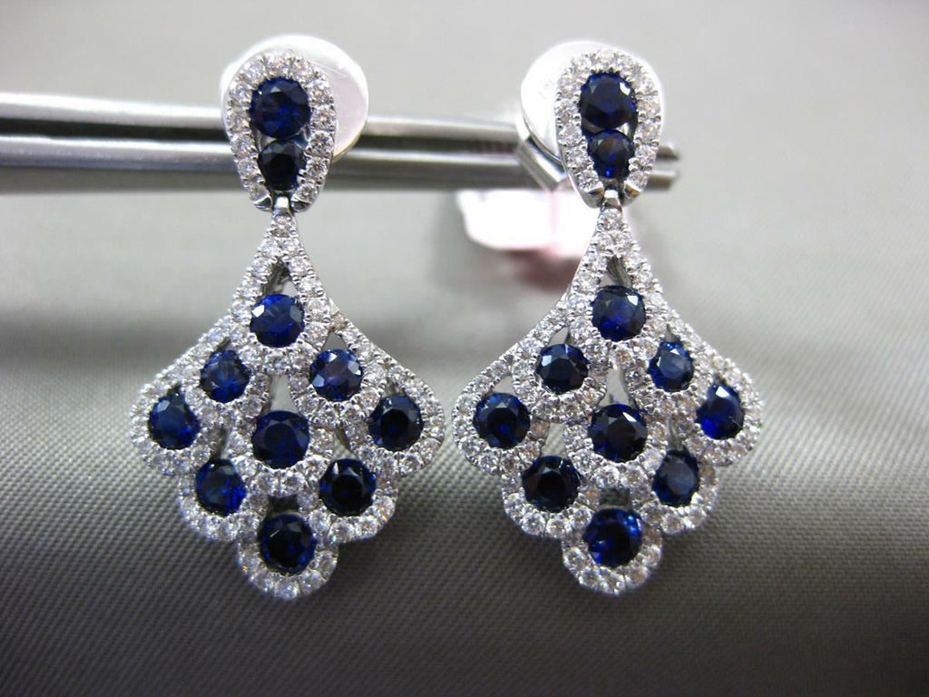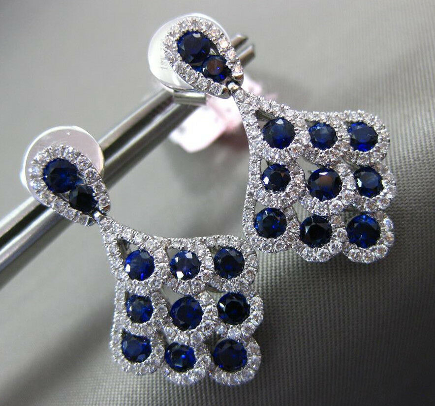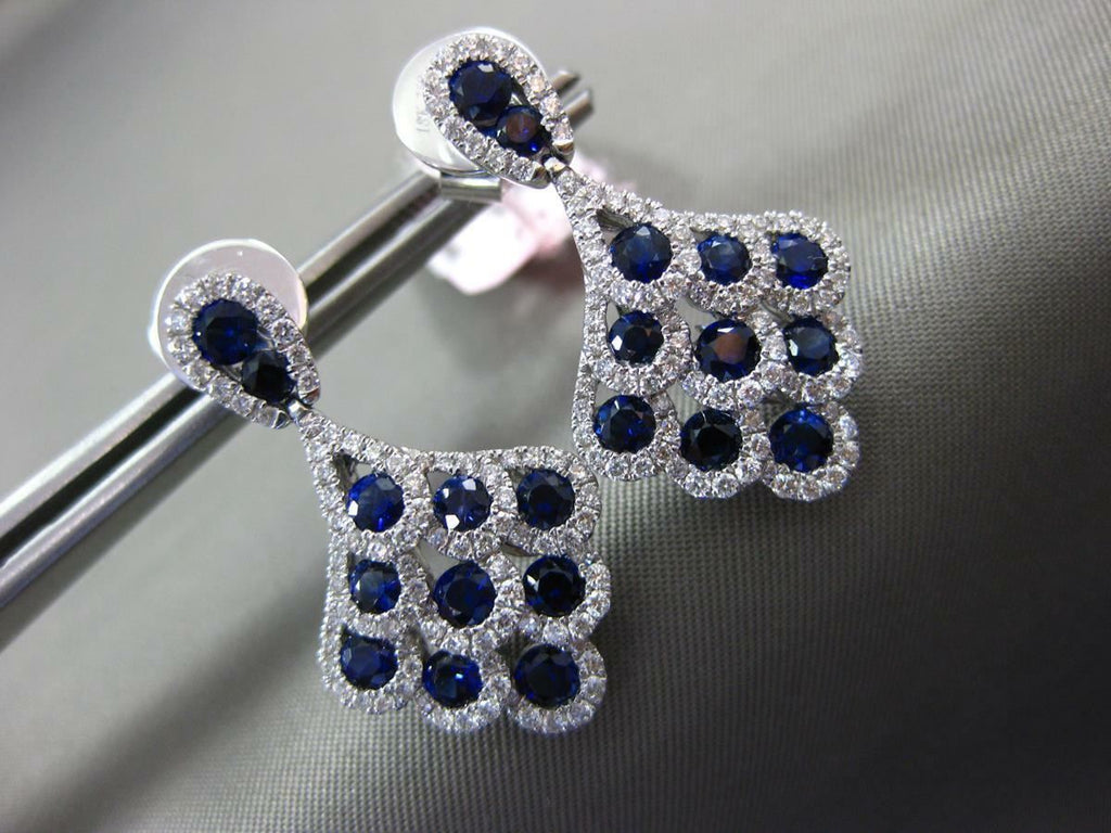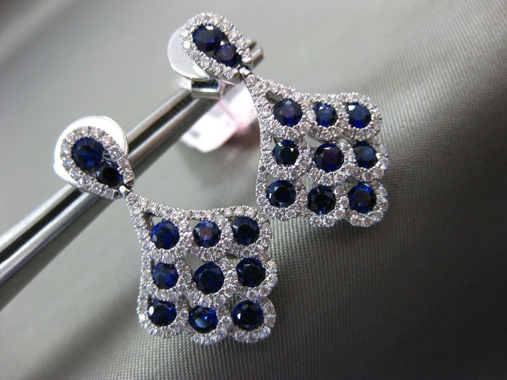 LARGE 3.31CT DIAMOND & AAA SAPPHIRE 18K WHITE GOLD 3D TEAR DROP HANGING EARRINGS