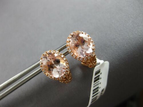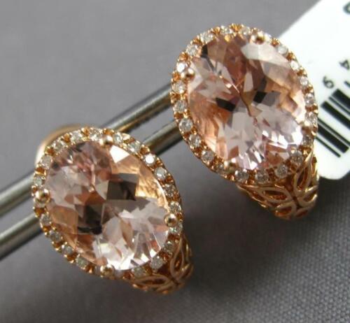 LARGE 3.45CT DIAMOND & AAA MORGANITE 14K ROSE GOLD OVAL CLIP ON HANGING EARRINGS